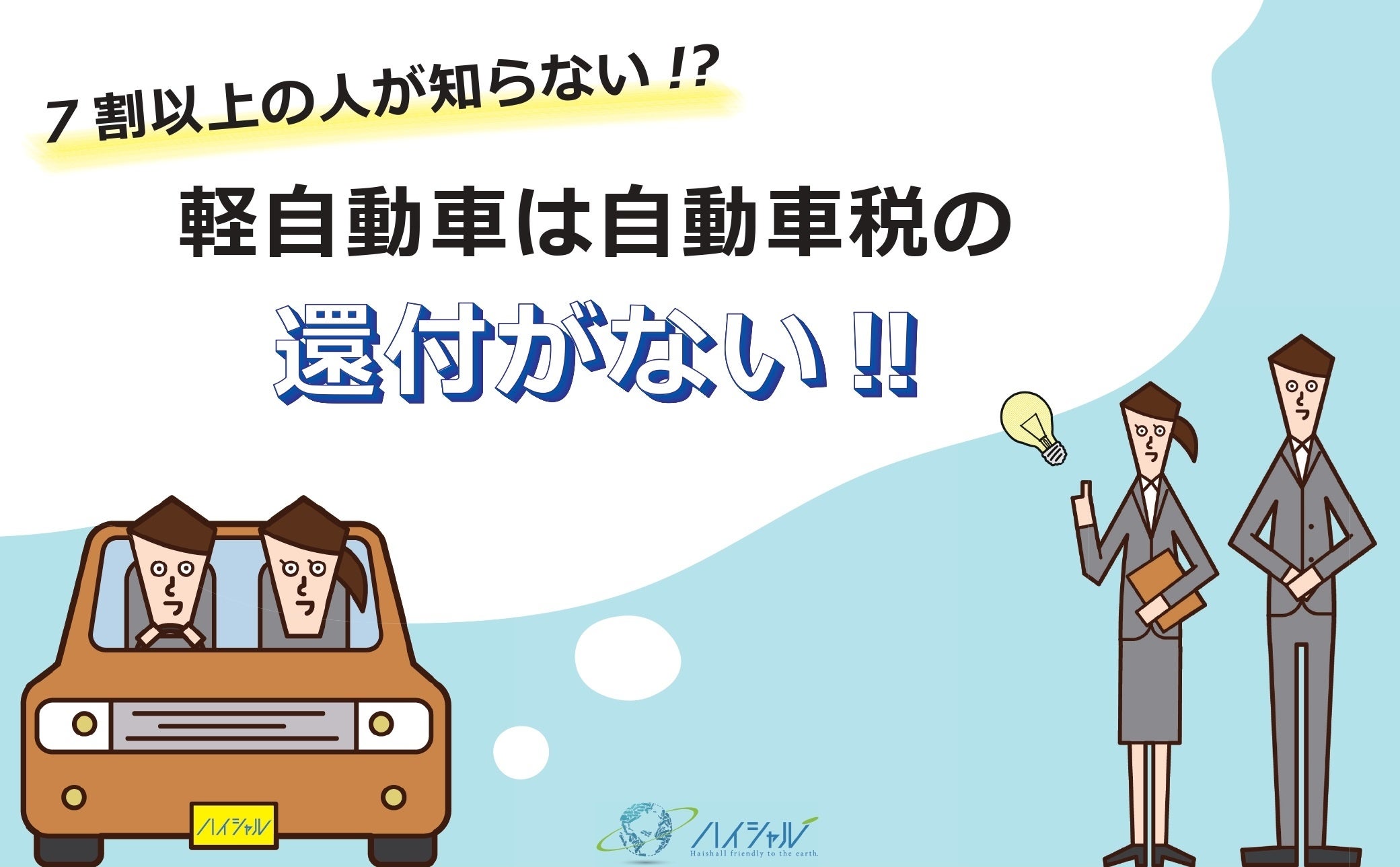 廃車の買取りサイト『ハイシャル』では、廃車となり中古車として国内で再販できない車でも、資源として再利用が可能だったり、海外で人気のある車種だとパーツのニーズが高いため、エンジンがかからず動かない車や車体がひどく傷ついた車に買取価格がつくことがあります。このような車は廃車費用がかかると思っているユーザーも多く、少しでもお金になればと思い『ハイシャル』のサイトにたどり着くユーザーがいます。数千円の買取価格でも「ハイシャルに廃車依頼をして良かった」とその後リピーターになってくれるユーザーもいる程で、少額のお金も大切にしている人がたくさんいると実感させられます。軽自動車の自動車税も月割りに換算すると少額かもしれませんが、還付が無いため使わなくなってきたことを実感してから廃車すると支払った自動車税が無駄になってしまう可能性があります。買取強化を行うことでお金を大切にするユーザーへ軽自動車は自動車税の還付が無いと伝えられれば、より良い廃車買取りサービスの提供へ繋がると考えています。