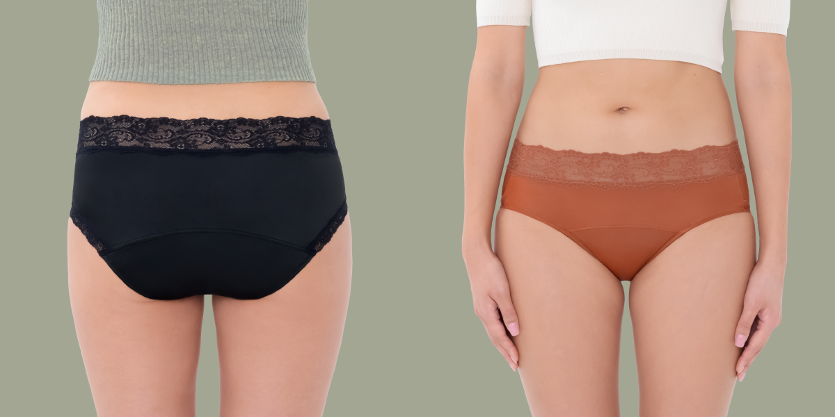Nagi comfyの吸水量は、レースミッドライズが約55mL、ハイウエストが約40mL。吸水力が高いので、多くの方にご安心いただけます。