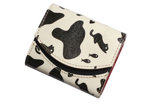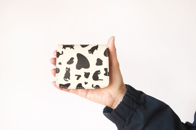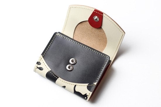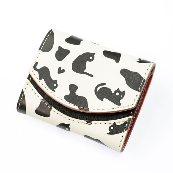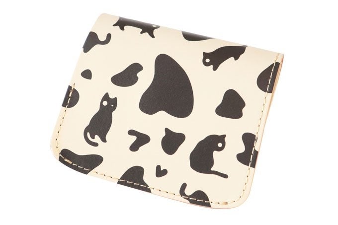 猫好きをアピール!⽜柄に猫が隠れた⼩さなお財布。キャッシュレス時代の必需品です。