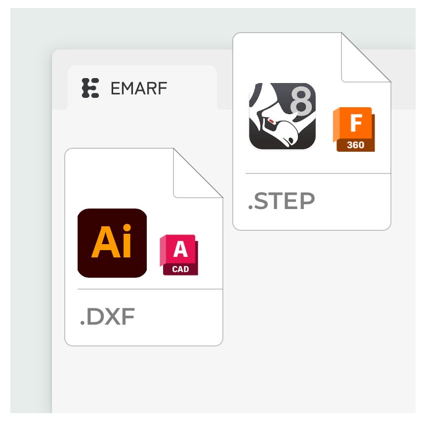 ・DXF、STEPファイルフォーマットに対応しているため、Rhinoceros、AutoCADなど、使い慣れた設計ツールのデータを読み込んで、制作可能なデータに変換できます(STEPファイルは近日対予定)。