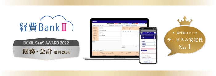 今回の「BOXIL SaaS AWARD 2022」において、当社が提供する「経費BankII」は、利用ユーザーからの高い評価により「財務・会計部門」を受賞する運びとなりました。また同時に、「BOXIL SaaS」に投稿された口コミの投稿数・評価点数から、ベスト評価賞「経費精算システム サービスの安定性No.1」としても選出されております。