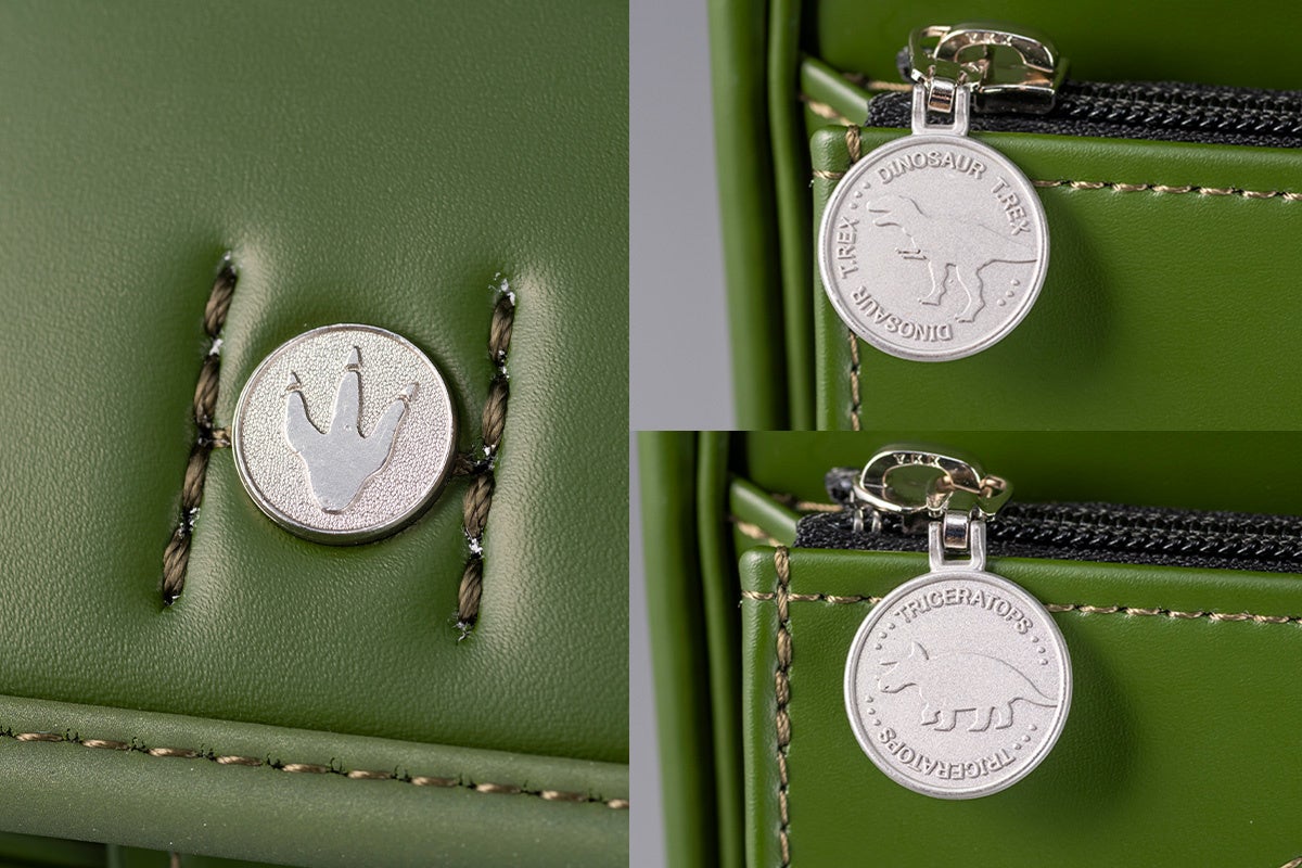 鋲や引き手、内装のデザインまで至るところに恐竜を散りばめながらも、飽きのこないデザインに仕立てています。