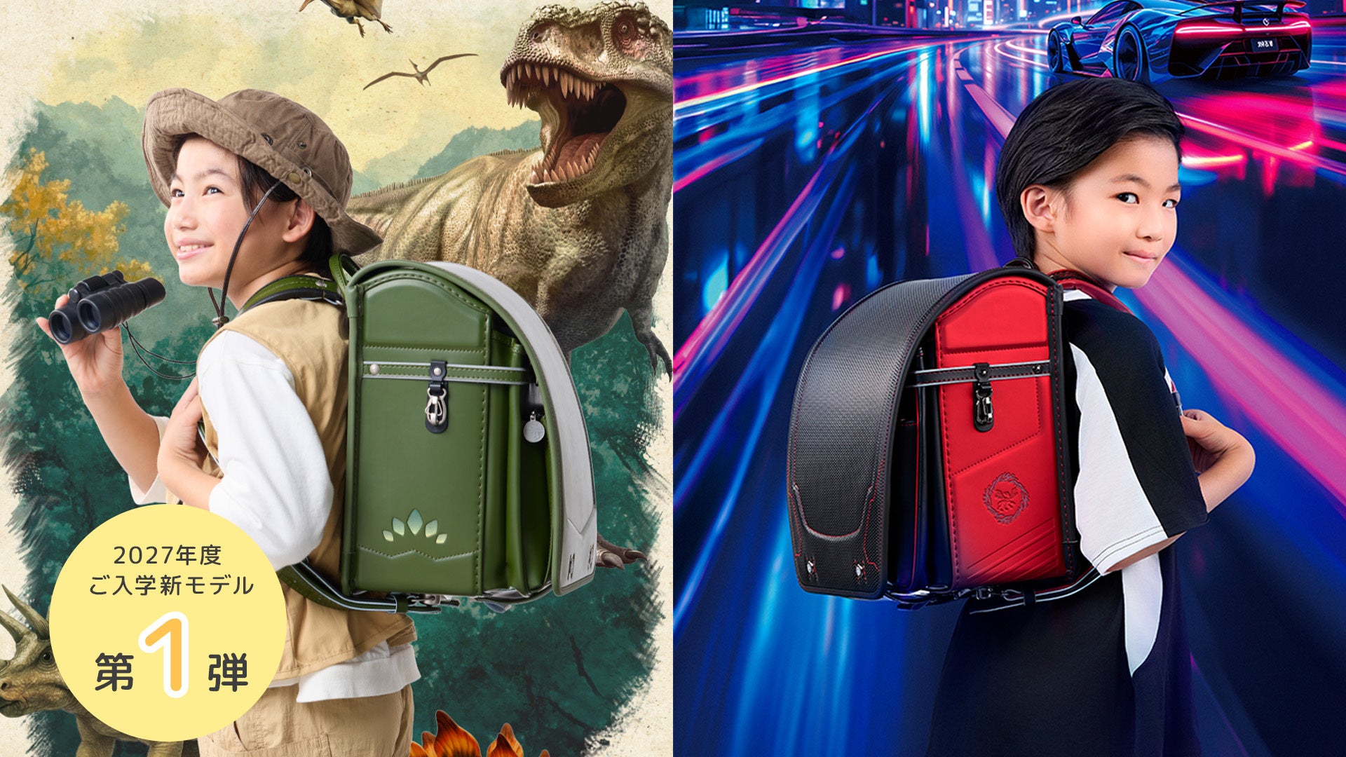 ■恐竜・車をモチーフにした斬新だけど飽きがこない新デザイン。ブラックが中心だった男の子でも多様化が進み、選ぶ楽しさが充実の2027年度ご入学向けモデル