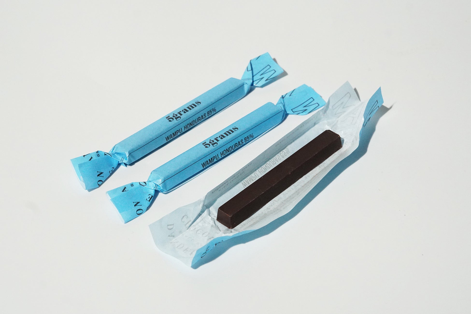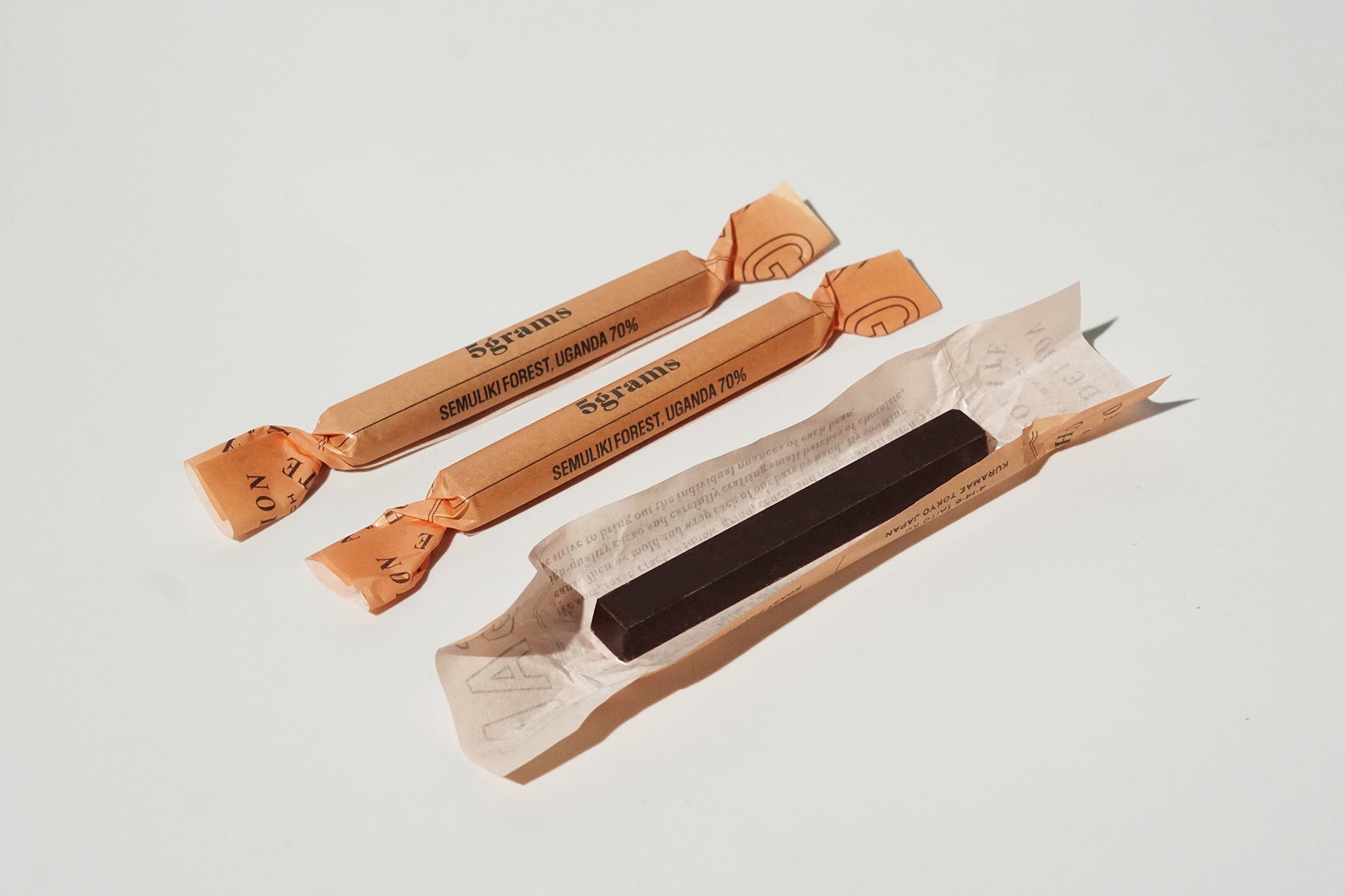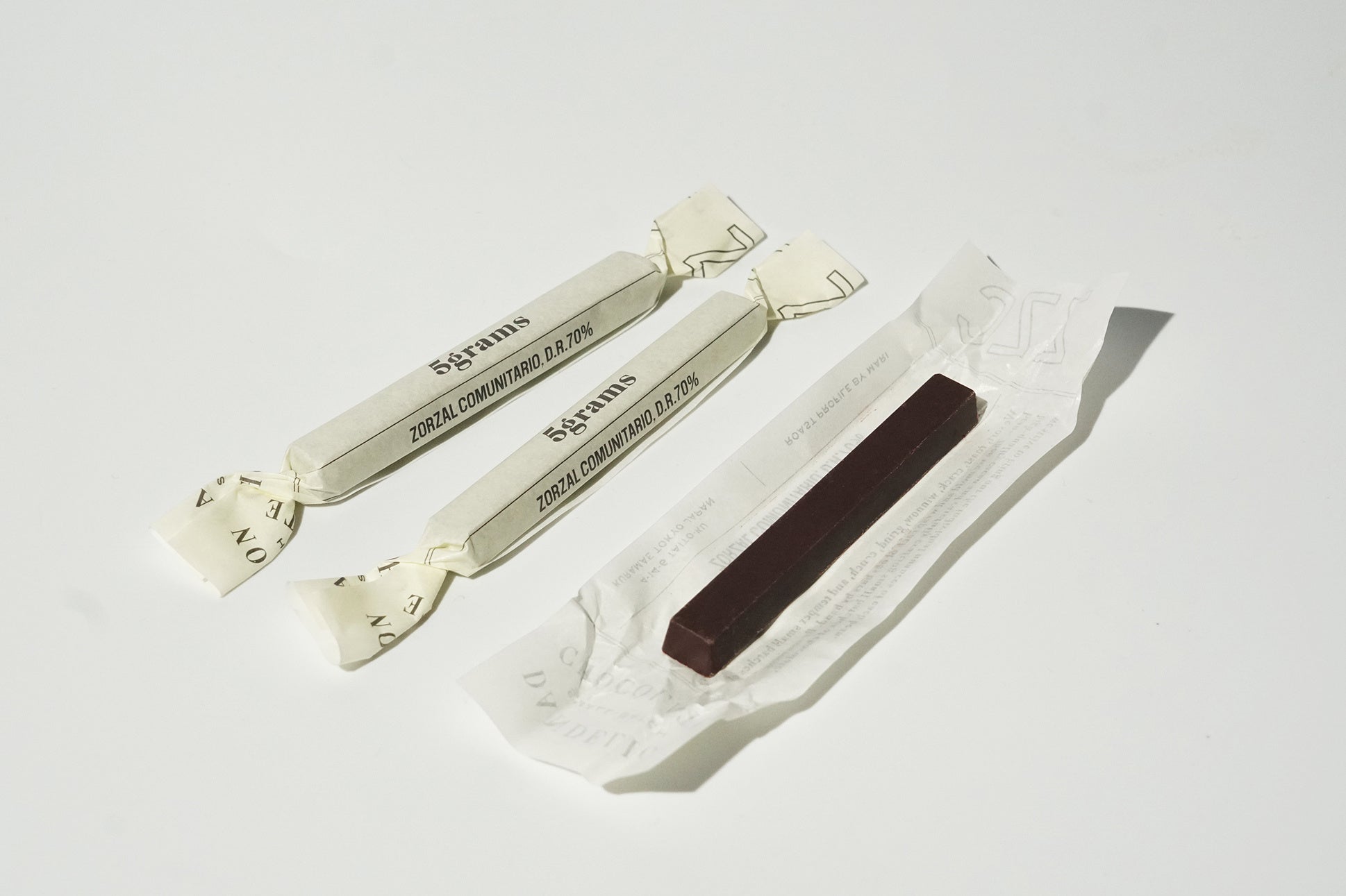 そんな想いから、厳選した5種類のカカオ豆とオーガニックのきび糖だけを使用し、素材の風味を最大限に引き出す丁寧な製法で、カカオ本来の味わいを凝縮した5gのチョコレートが誕生しました。