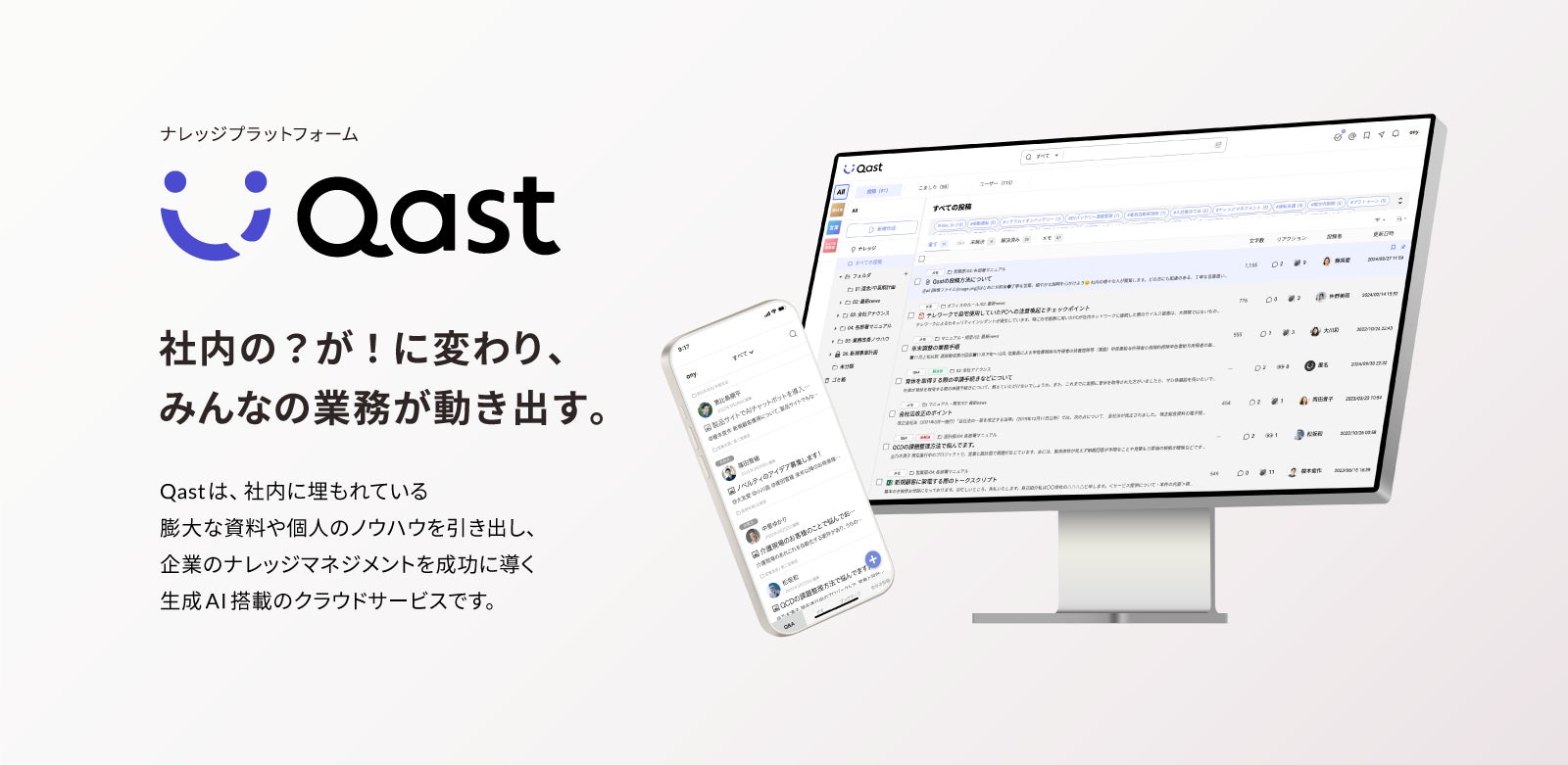 このパーパスの元、ナレッジマネジメントを通して組織に新しい力を生み出し、よりよい社会を実現させるためにナレッジプラットフォーム「Qast」を提供しています。そのナレッジマネジメントというドメインはこれまで30年来解がなかった領域で、最適解を導きだすことに全力で取り組んでいます。