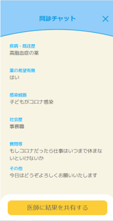 ・基本的な初診問診をベースとしたチャット機能(疾患別の対応可能)