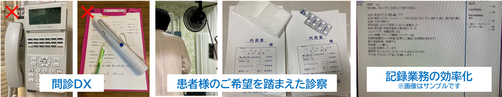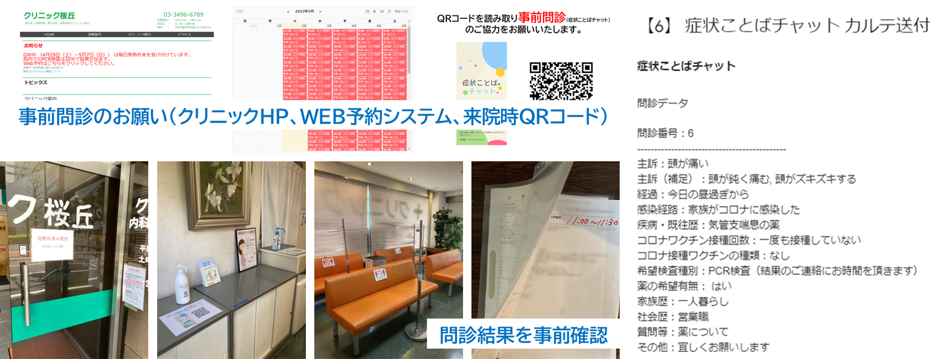 ・患者様の症状把握による診察の滞りない推進と患者様同⼠の感染拡⼤防⽌