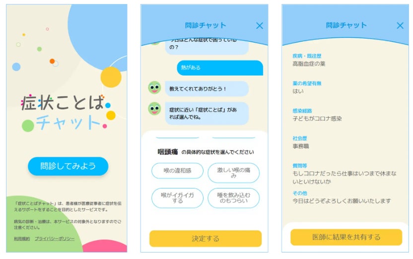 「定型型」症状ことばチャット サンプル コロナ発熱外来版:https://syoujyoukotobachatai.com/