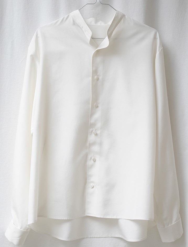 京都、丹後の地で織られたシルクを100%使用したオフィサーシャツ。高級絹織物「丹後ちりめん」用の特別なシャトル織機で織られたシルクは、しっかり高密度ながら、空気を含んだようなやわらかさのある生地に仕上がっています。ちょっと綺麗に装いたいときも、なんでもない時も、『kinudian』のオフィサーシャツは日常にそっと寄り添います。