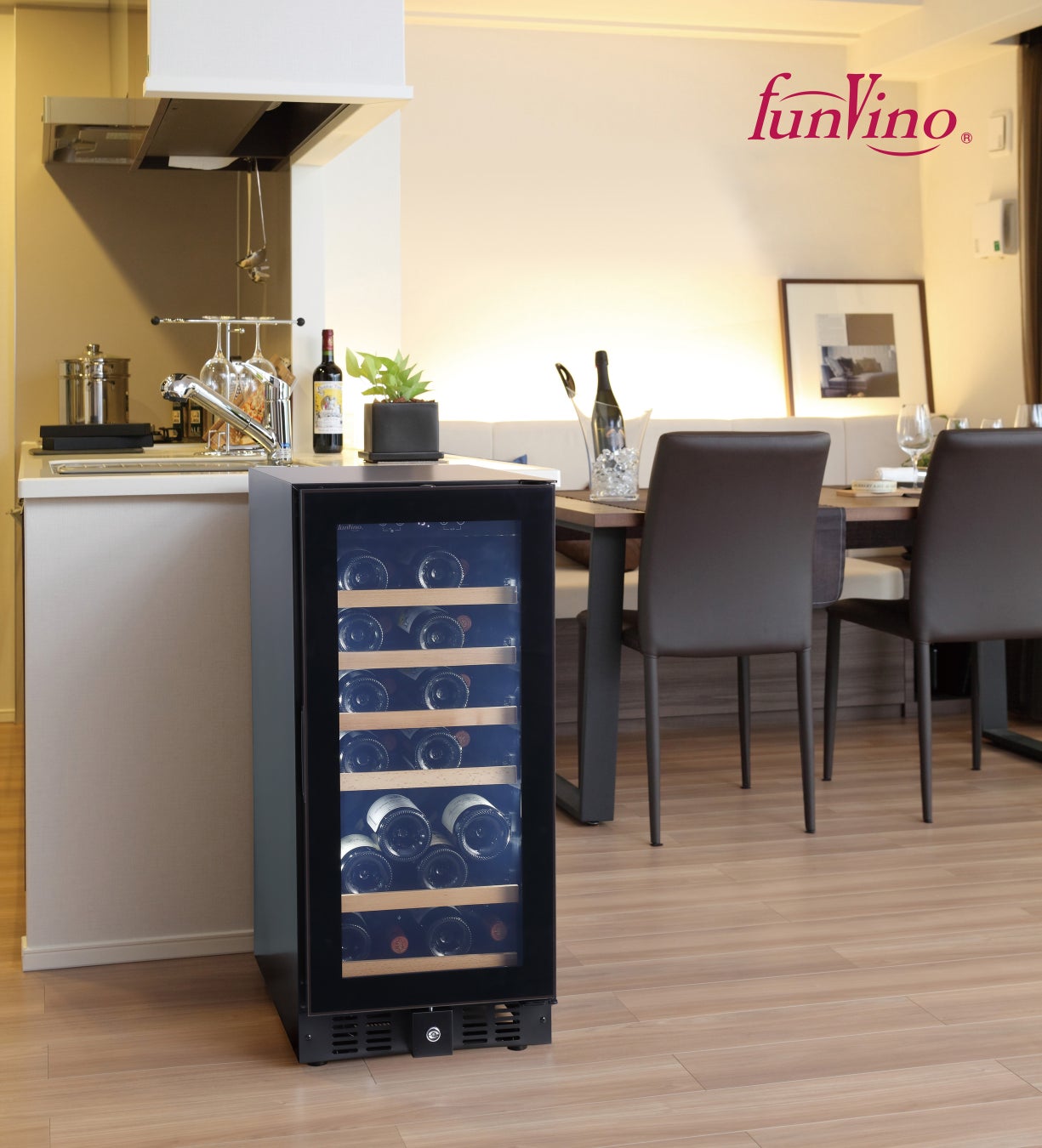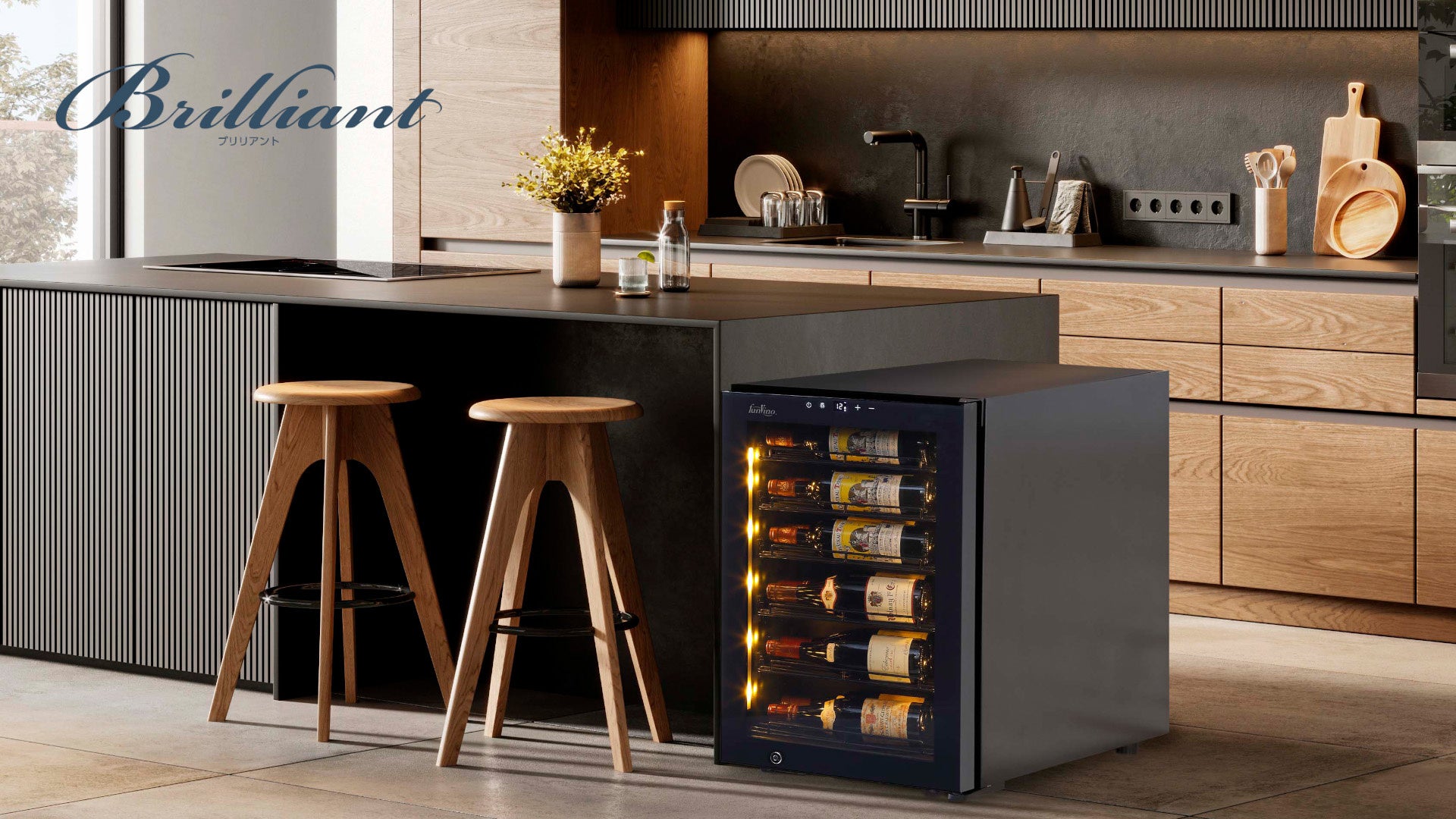 ワインが主役になる “魅せる”ワインセラー『ブリリアント』の機能性とデザイン性を残しつつ、縦1列にラベルを見せながらボトルを収納することで、横幅がわずか45cmとコンパクトに設計された『ブリリアント』シリーズでは最も小型のワインセラーです。最大収納本数22本。