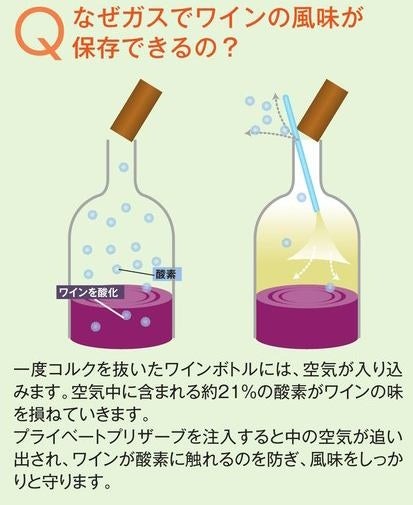 (1)シュシュ、シューと簡単ガス保存で、酸化劣化を抑制しワインの風味を守る 『プライベートプリザーブ』