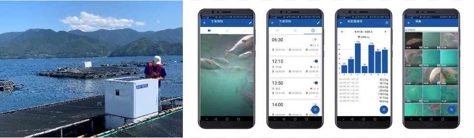 「UMITRON CELL」は、AI・IoT技術を活用した水産養殖者向けスマート給餌機です。スマートフォンなどの端末から生け簀で泳ぐ魚のリアルタイム動画を見ながら遠隔で餌やり操作が可能。また、AIが魚の食欲を判定し、餌量やスピードを最適化、制御することができるため、労働負荷の削減と餌の最適化、海へ餌が流出することを防ぎ環境に配慮した養殖業の実現に貢献しています。