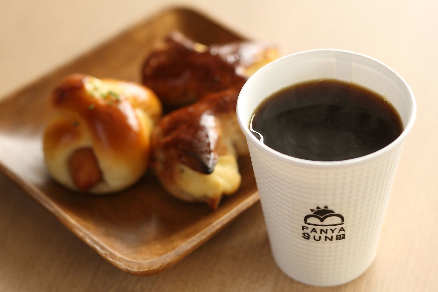 無料のセルフコーヒーの提供もあり、焼き立てを食べてもらうまでの一連の体験ができるようになっています。