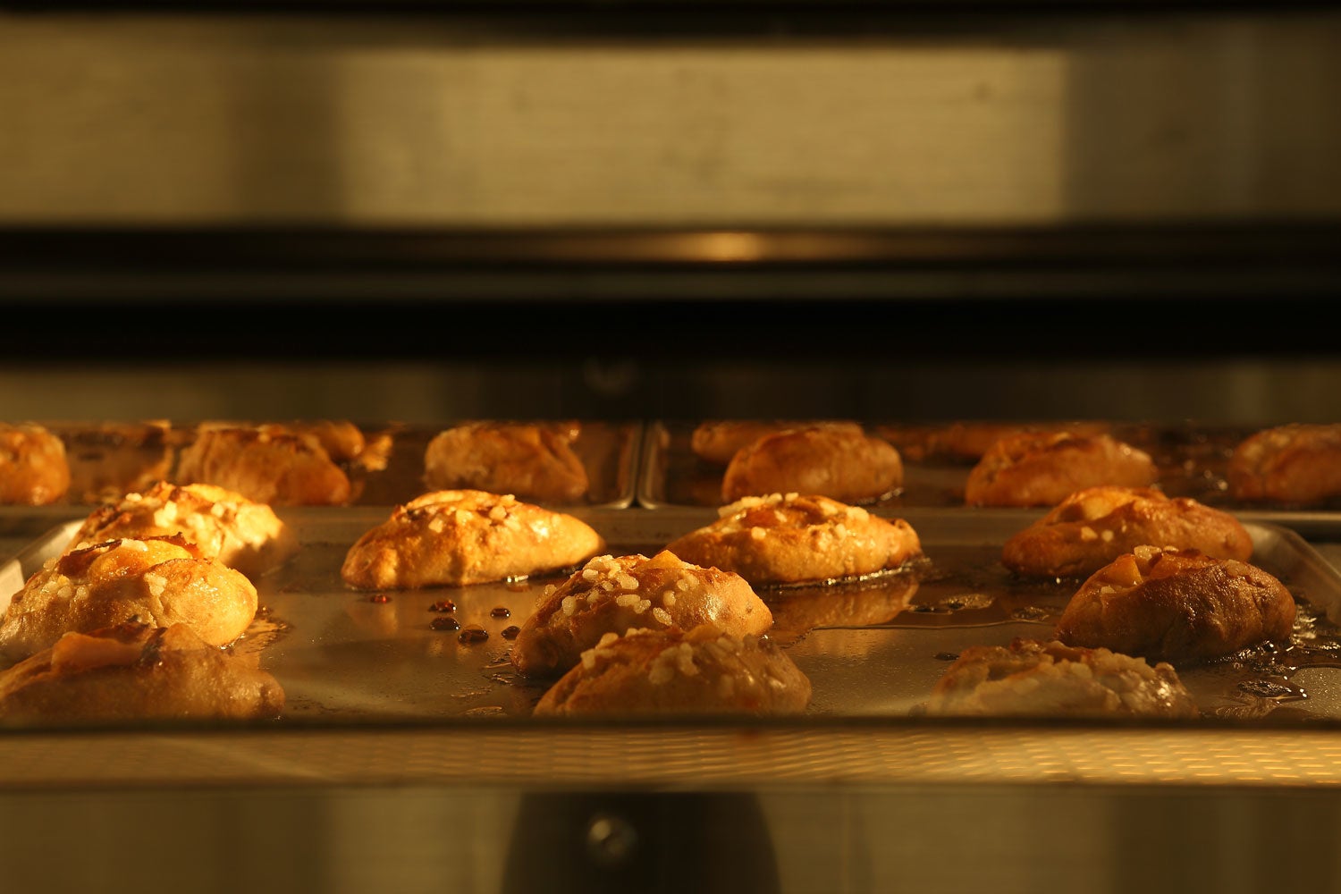 一般的には同じパンを一度に大量に焼く方が効率がよく、通常のパン屋ではまとめて焼くことが多い中、パン屋SUNtoFでは「効率を度外視してでもお客さんに焼き立てを届けたい」という想いから、同じ種類のパンを少量ずつ、1日に複数回焼くことで、店内に焼き立てのパンが常に並ぶ状態を実現しました。