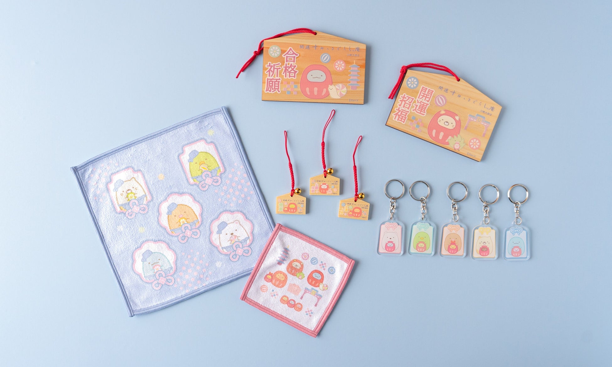 川崎大師名物の「だるま」や「飴」をモチーフにした川崎大師店ならではのアイテムはもちろん、「開運」「和菓子」モチーフの開運すみっコぐらし庵限定商品やすみっコぐらしグッズをたくさんご用意しております。