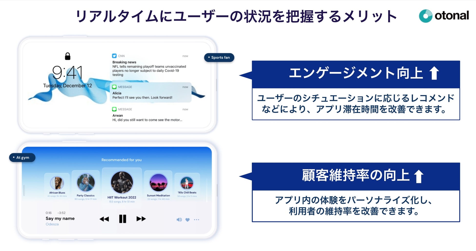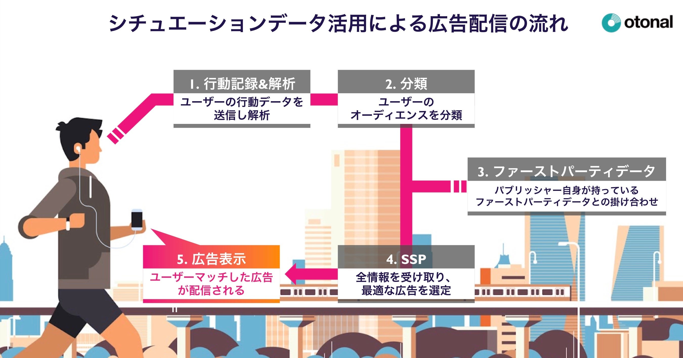オトナルとの戦略的提携によって、日本の音声アプリを運営するパブリッシャーは、シチュエーションデータを用いたターゲティングと正確性の高いユーザーの行動解析を通して、広告による収益化を最大化することができます。ユーザー情報を特定するIDを使用せずに、プライバシーを配慮しながら消費者にとってリアルタイムでもっとも最適な広告配信が可能になります。