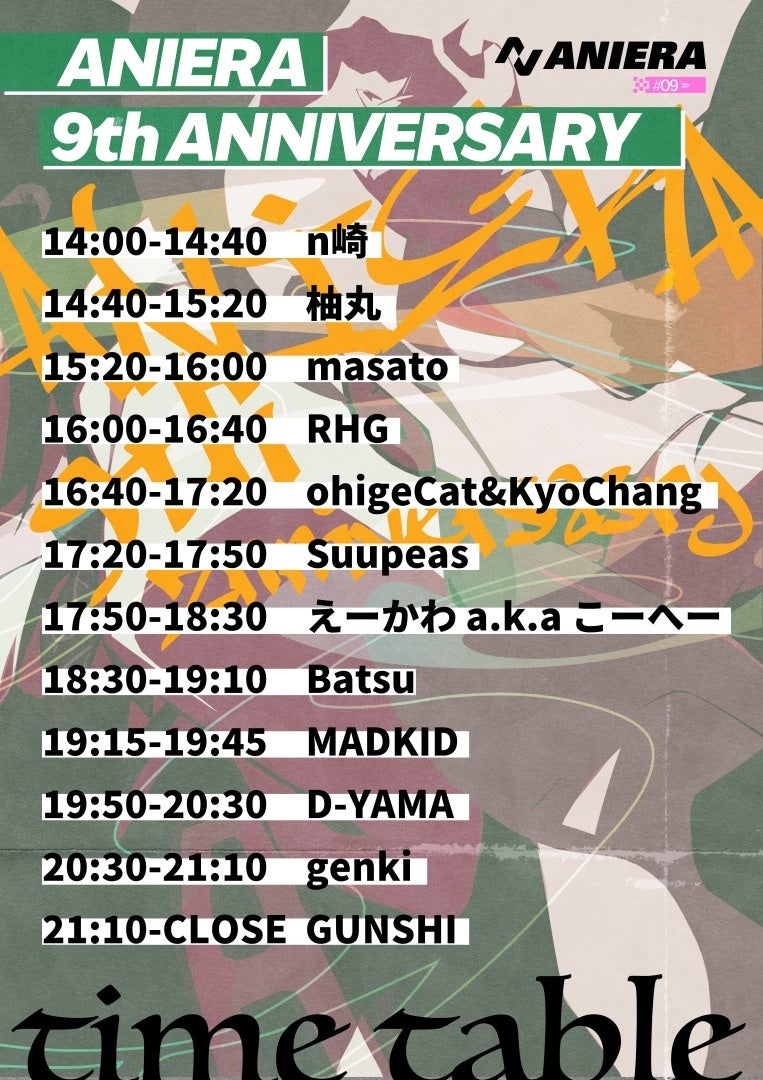 イベント名:ANIERA 9th ANNIVERSARY PARTY