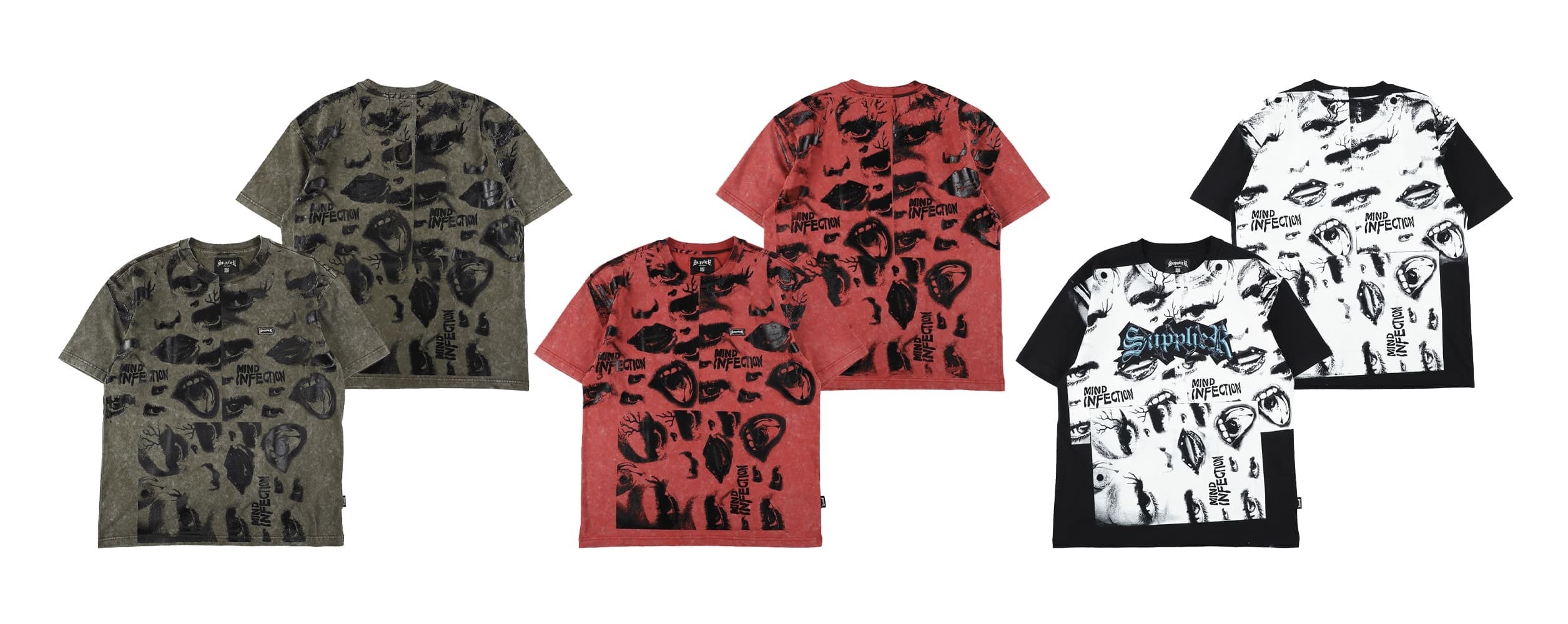MIND INFECTIONは、スクリーンプリントを駆使したオリジナルデザインのリメイクTシャツを制作。個性的でアート要素の強い大胆なデザインが特徴で、ストリートファッション好きにとってマストアイテムに。ストリートカルチャーの本質とクリエイティブを融合させ、彼らしい個性的なスタイルを生み出しました。