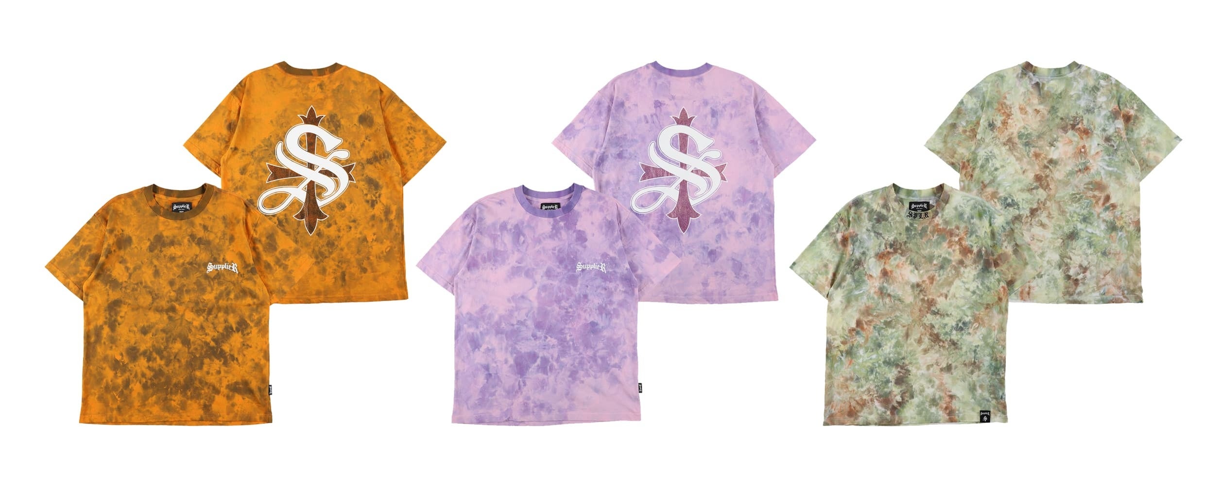 Peace communeは、氷を使った特殊な染め技法でTシャツを彩りました。一点一点異なる染めの模様が個性を引き立て、SUPPLIERのデザインと相まって、ストリートウェアのアート性を高めています。色鮮やかなアートとSUPPLIERの品質とクオリティが融合したこのリメイクTシャツは、SUPPLIERファンに大いに注目されることだろう。