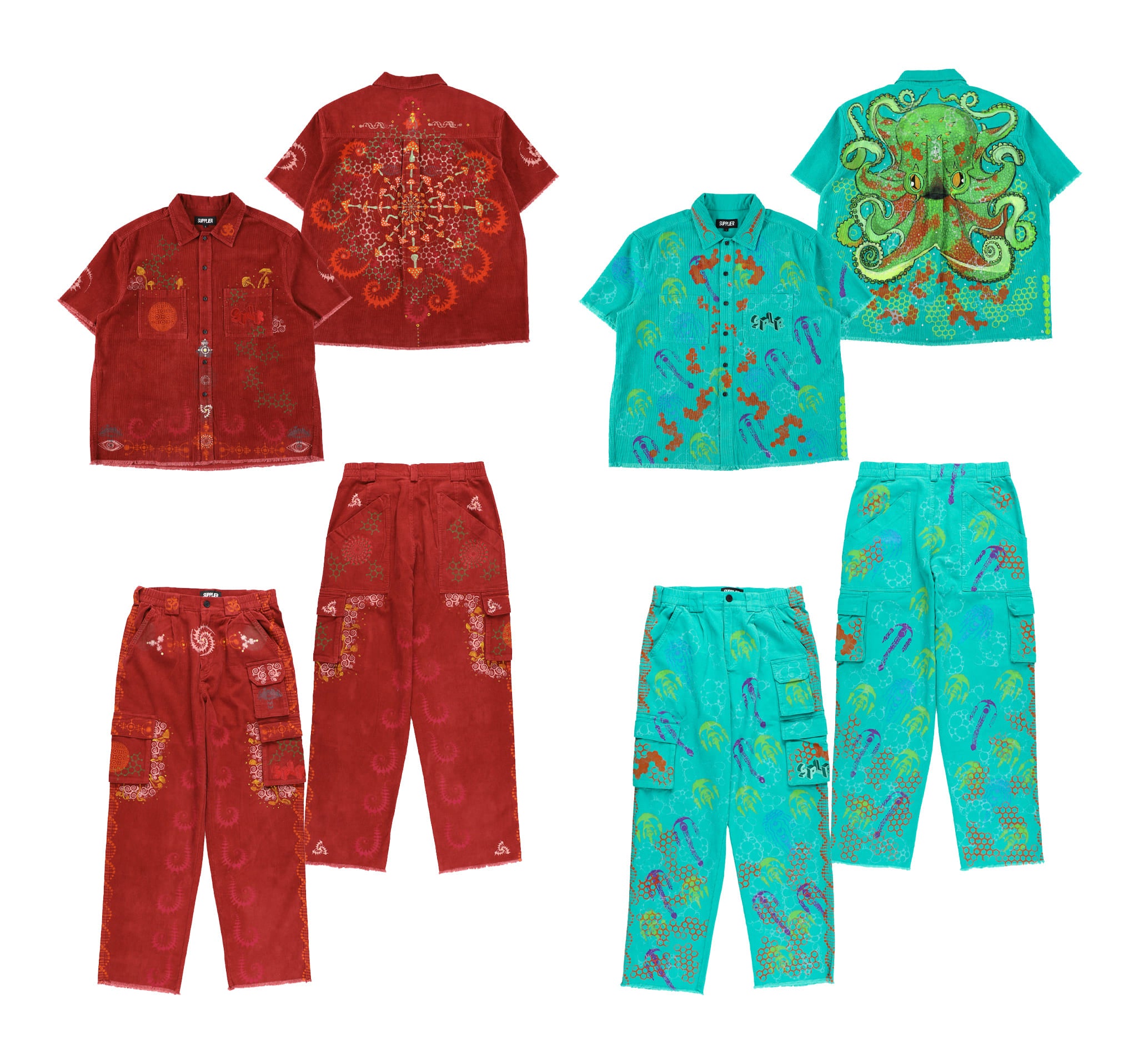 コラボレーションによって生まれた「ONE OFF ARTコレクション」は、SUPPLIERの信念と、彼らの独創的なアートスタイル、サステナブルなアプローチが融合。第一弾、第二弾、第三弾と、3週間にわたりSUPPLIERオンラインにて発売いたします。