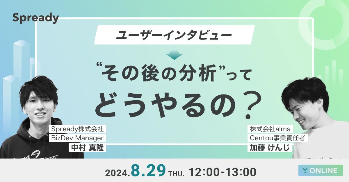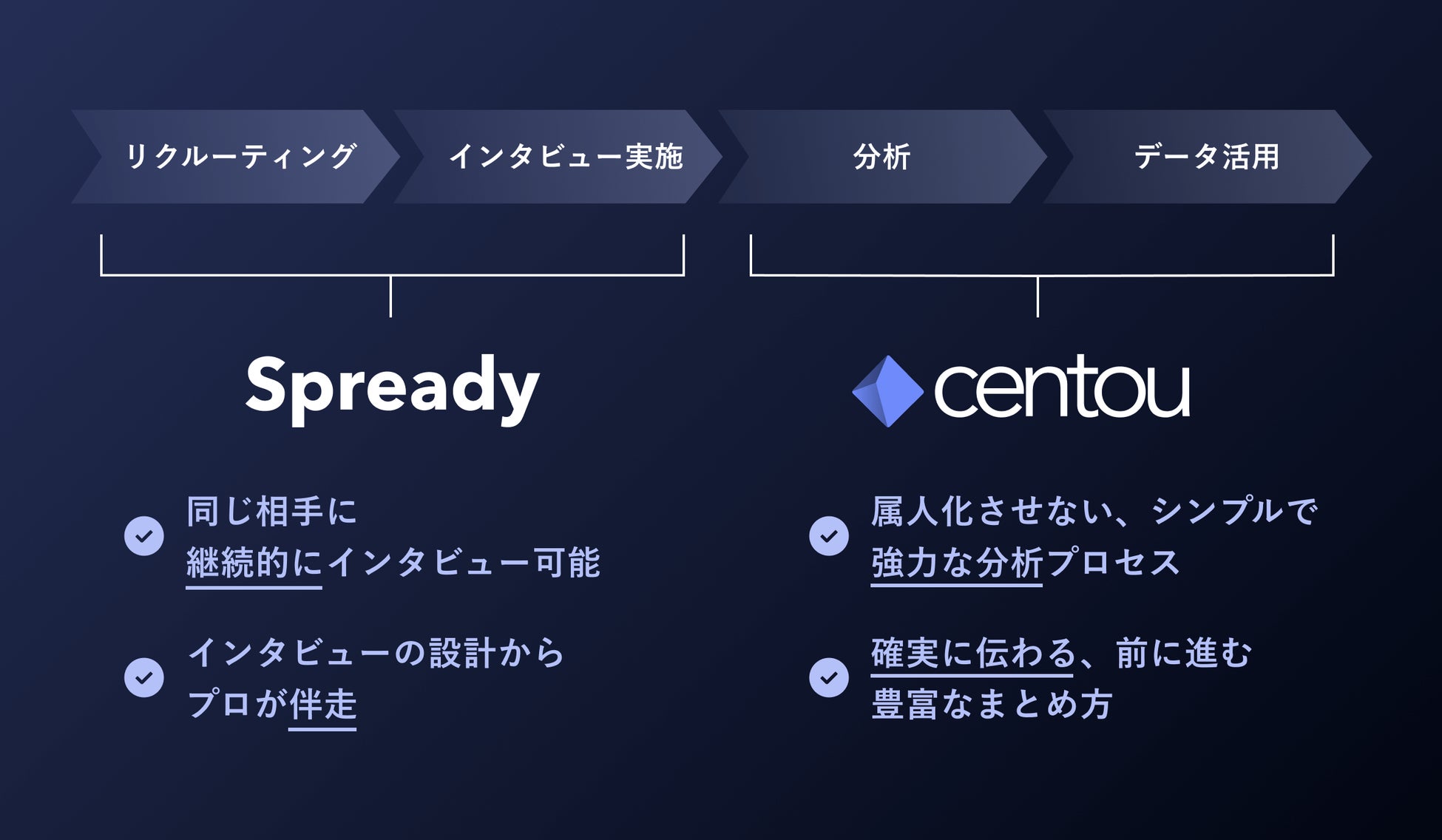 この度の提携にあわせて、SpreadyとCentouにより「ユーザーインタビュー後の分析」をテーマにイベントを実施いたします。