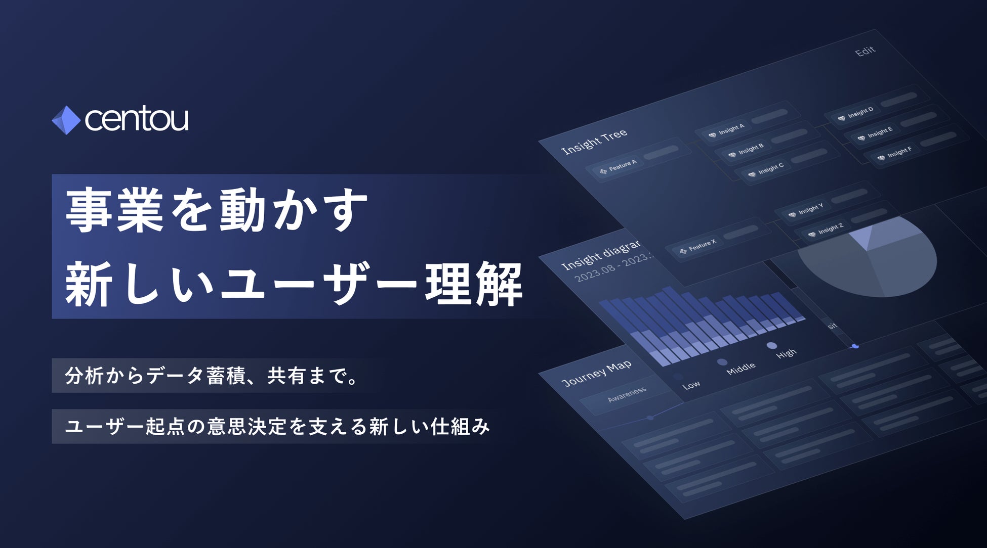 「Centou」は、ユーザーインタビューなどのデータを管理し、顧客理解を確実な事業成長へと変換する、インサイトマネジメントシステムです。これまで、スタートアップから大手企業など、多くの企業にご活用いただき、売上2倍成長、3ヶ月での新規事業立ち上げなど、「事業成長を実現する、真のユーザー理解の方法」として、成果を上げてきました。