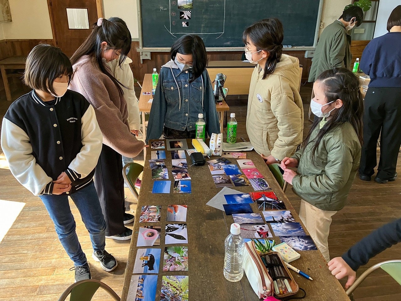 2日目の午前中は実技の屋外撮影として、かさおか太陽の広場にて撮影を行いました。午後からは子どもたちへの宿題であった「すきなもの」をテーマに、撮影をしてきた写真を参加者みんなで見たり、写真展に向けた展示のレイアウトを一人一人石田さんへ相談したり、子どもたちは普段学校では教えてもらえないような授業を楽しんでいました。