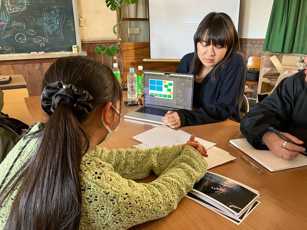 初日はシェアアトリエ海の校舎にて、午前中は石田さんの講義や実技として校舎内の撮影を行いました。午後からは午前中に子どもたちが撮影した写真に対して、石田さんからコメントをいただきました。