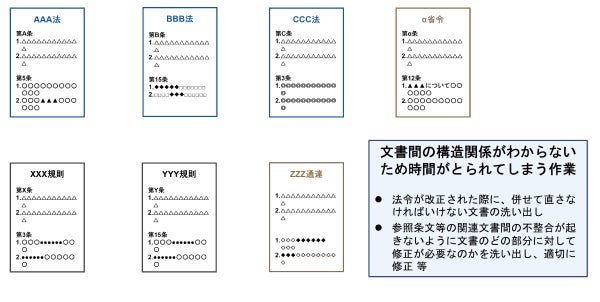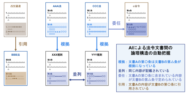 AIによる法令文書間の論理構造の自動把握のイメージ