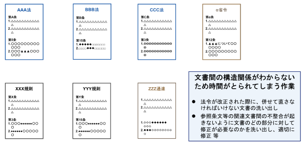 これまでのように、文書間の構造関係がわからない状態での作業では対応関係の把握に多くの時間がとられてしまいます。