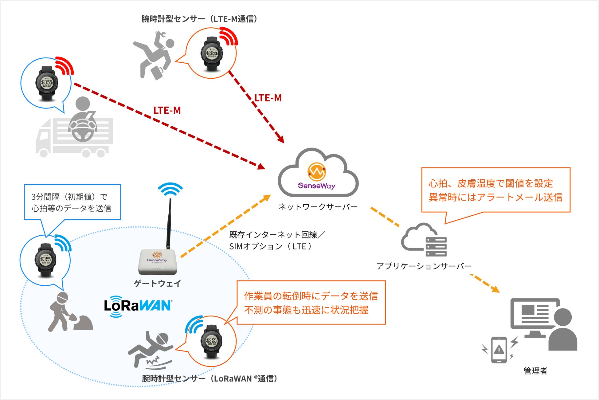 センスウェイは、長距離通信を低消費電力で行えるIoTに最適な無線通信規格であるLPWA(Low Power Wide Area)のLoRaWAN®を使ったIoTプラットフォームサービス「SenseWay Mission Connect」を提供しています。また、センスウェイは、LoRaWAN®の技術力をもとに、IoTによるデータを活用した各種ソリューションや、製造業や建設業向けの「作業員安全管理支援(熱中症予防対策や転倒検知)ソリューション」を提供し、企業のデジタルトランスフォーメーションを推進しています。