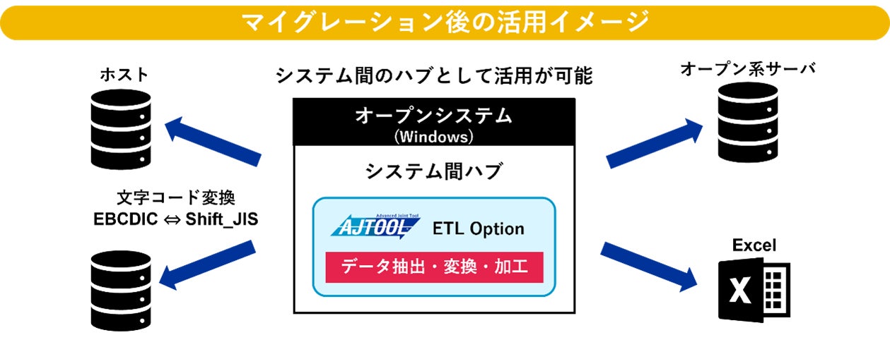 本オプションの提供により、「AJTOOL」は従来のメインフレームの各機能を代替するフレームワークとしての機能に加え、「Waha! Transformer(※)」が持つノーコードでデータの抽出、変換、加工ができる機能を備えることとなり、マイグレーション時のデータ変換からマイグレーション後のデータ活用におけるさまざまな場面で利用が可能となります。