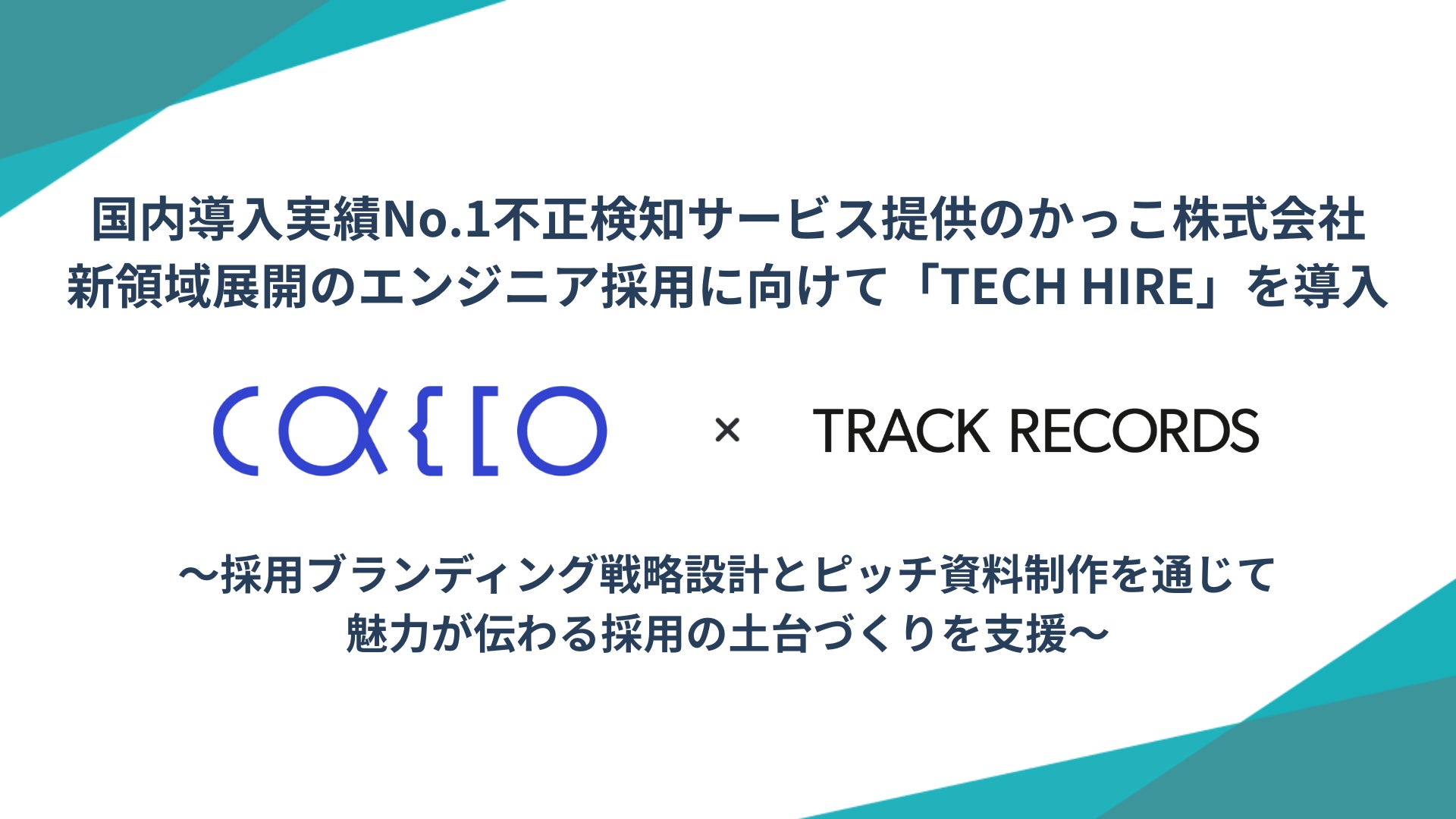 エンジニアを中心としたデジタル人材採用の総合支援サービス「TECH HIRE」を提供する株式会社トラックレコード(本社:東京都渋谷区、代表取締役:芹川太郎、野崎耕司)は、SaaS型アルゴリズム提供事業を展開するかっこ株式会社(本社:東京都港区、代表取締役社長:岩井 裕之)において、採用ブランディング戦略設計および採用ピッチ資料制作の支援を開始したことをお知らせします。