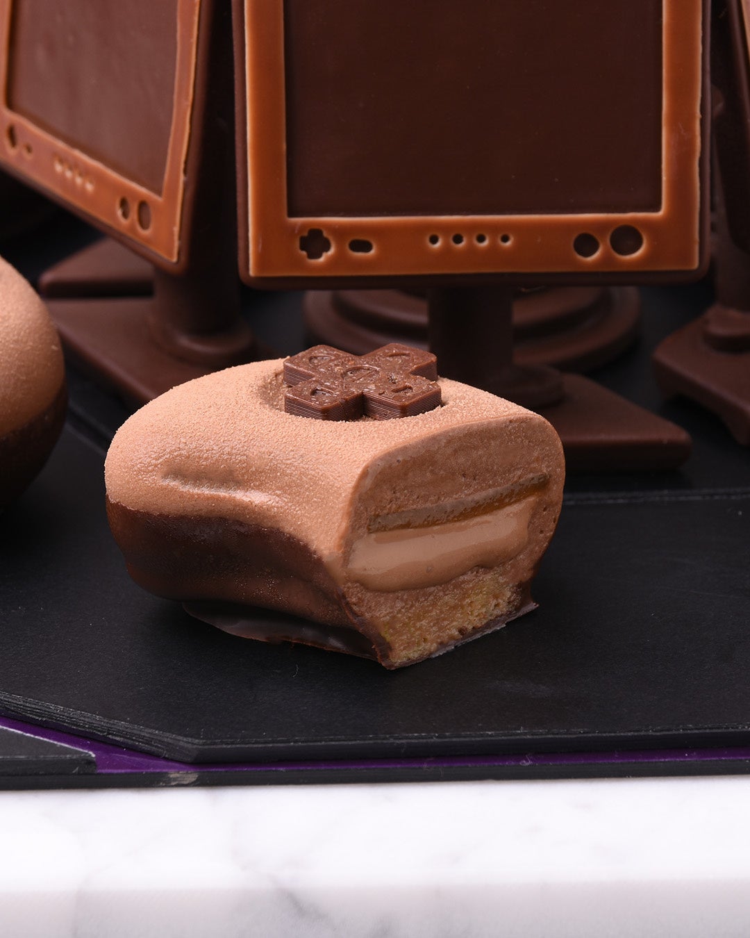 人生で最高のものを愛する人と分かち合う幸せからインスピレーションを得た作品。コールドブリューのコーヒーと深みのあるチョコレートの味わいをさまざまな形で表現し、料理界で愛されているフレーバーにスポットライトを当てたものです。カカオバリーのチョコレート「パプアジィ」と「アルトエルソル」を使ったチョコレート・ブリュレが、同じくカカオバリーのチョコレート「エクストラビター グアヤキル」の力強いカカオの風味を使ったクリーミーなムースとともにフィーチャーされています。「パプアジィ」と「アルトエルソル」は、コーティングと焼き菓子にも使われています。