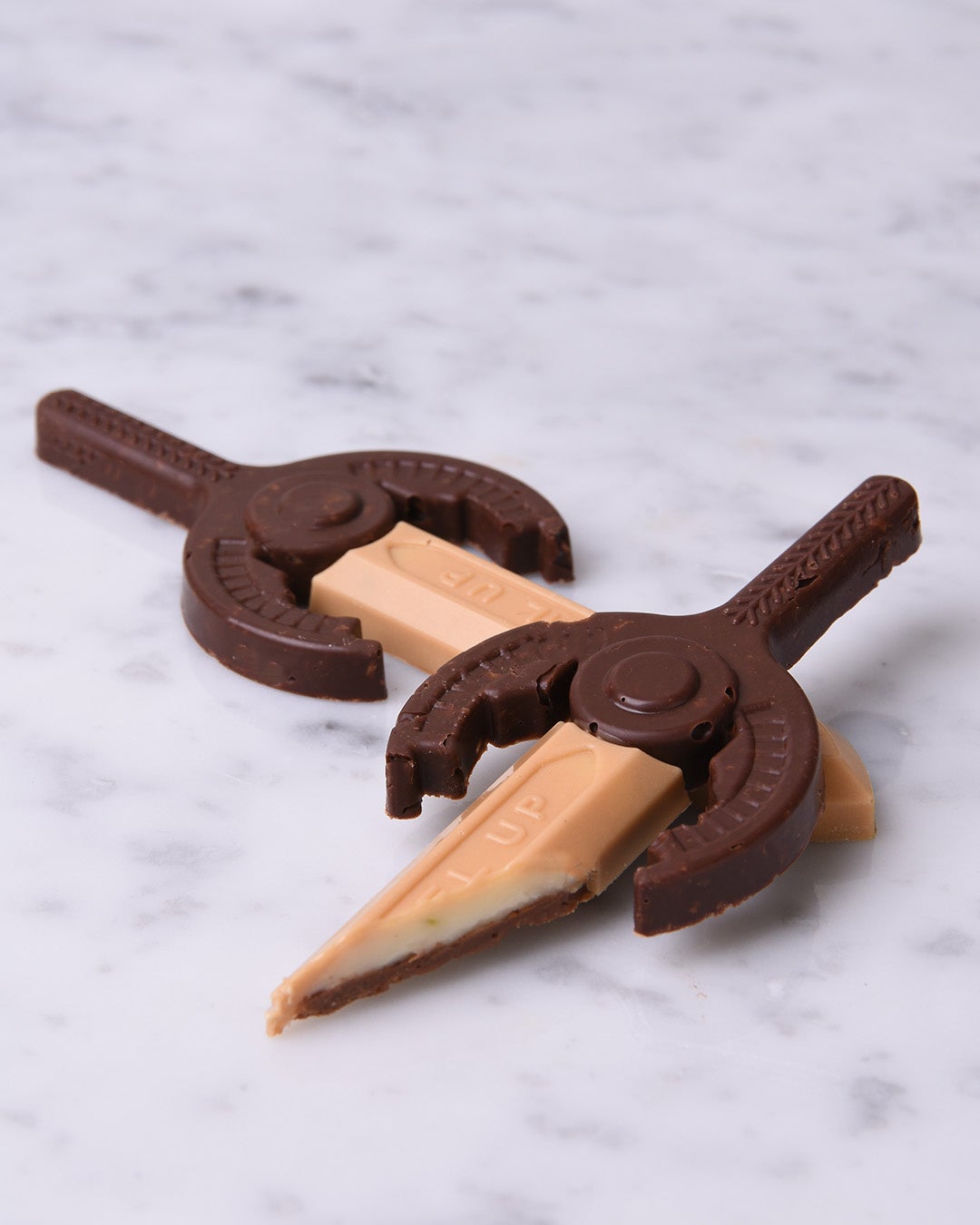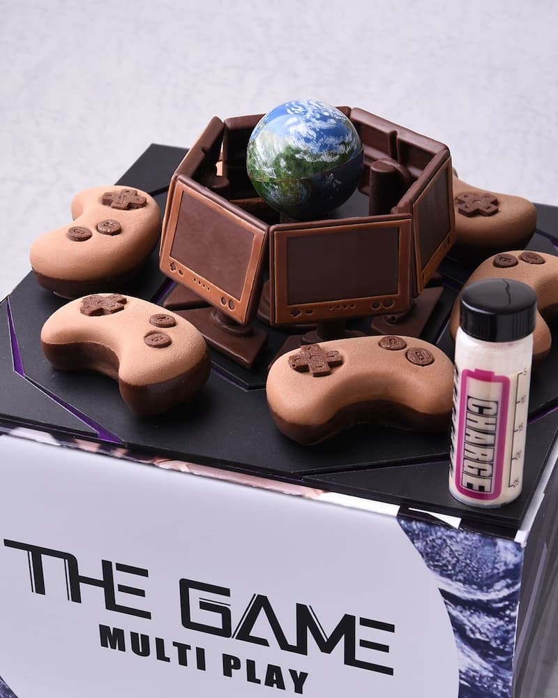 このボンボンショコラは、贅沢な組み合わせによって、まるでゲームのように味覚をレベルアップさせるようにデザインされています。カカオバリーのホワイトチョコレート「ゼフィール」のほのかな甘みとレモンの爽やかさが感じられるガナッシュには、ペアリングとして、カカオバリーのミルクチョコレート「アルンガ」のミルキーな香りを持つ玄米プラリネが添えられています。クラシックな甘さのタッチを加えたシェルは、アロマティックなカカオバリーのチョコレート「パプアジー」とほんのり甘い「アルンガ」で全体の味わいのバランスがとられています。