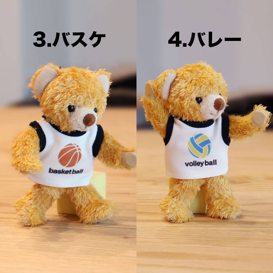 ◯スタイリッシュなスポーツロゴ: テディベアの正面には、野球、サッカー、バスケ、バレー、ラグビー、テニス、バドミントン、陸上の8つの人気スポーツロゴがオシャレにデザインされています。お好みのスポーツのロゴデザインをお選びいただけます。
