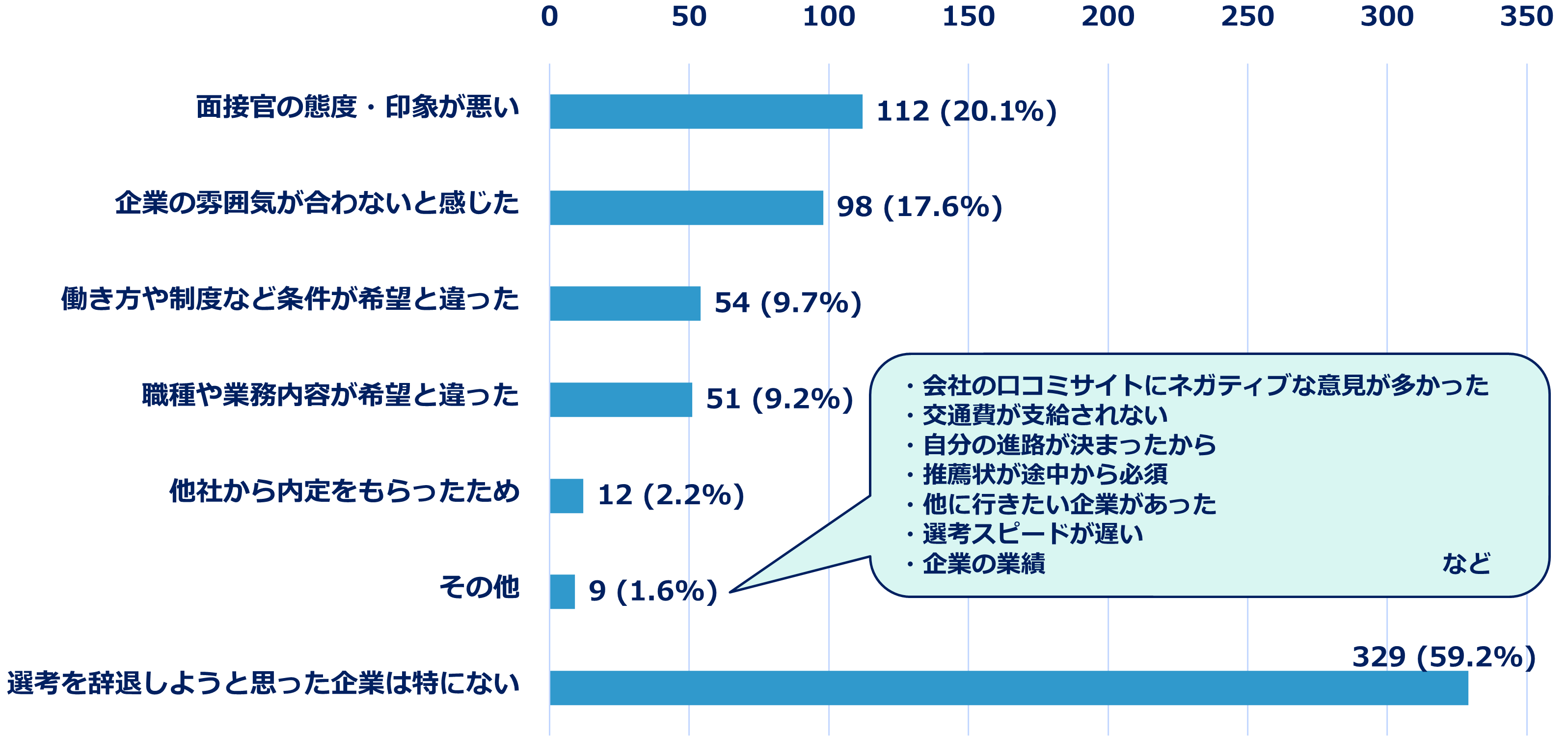 Q. 面接を受けた中で、選考を辞退しようと思った理由を詳しく教えてください