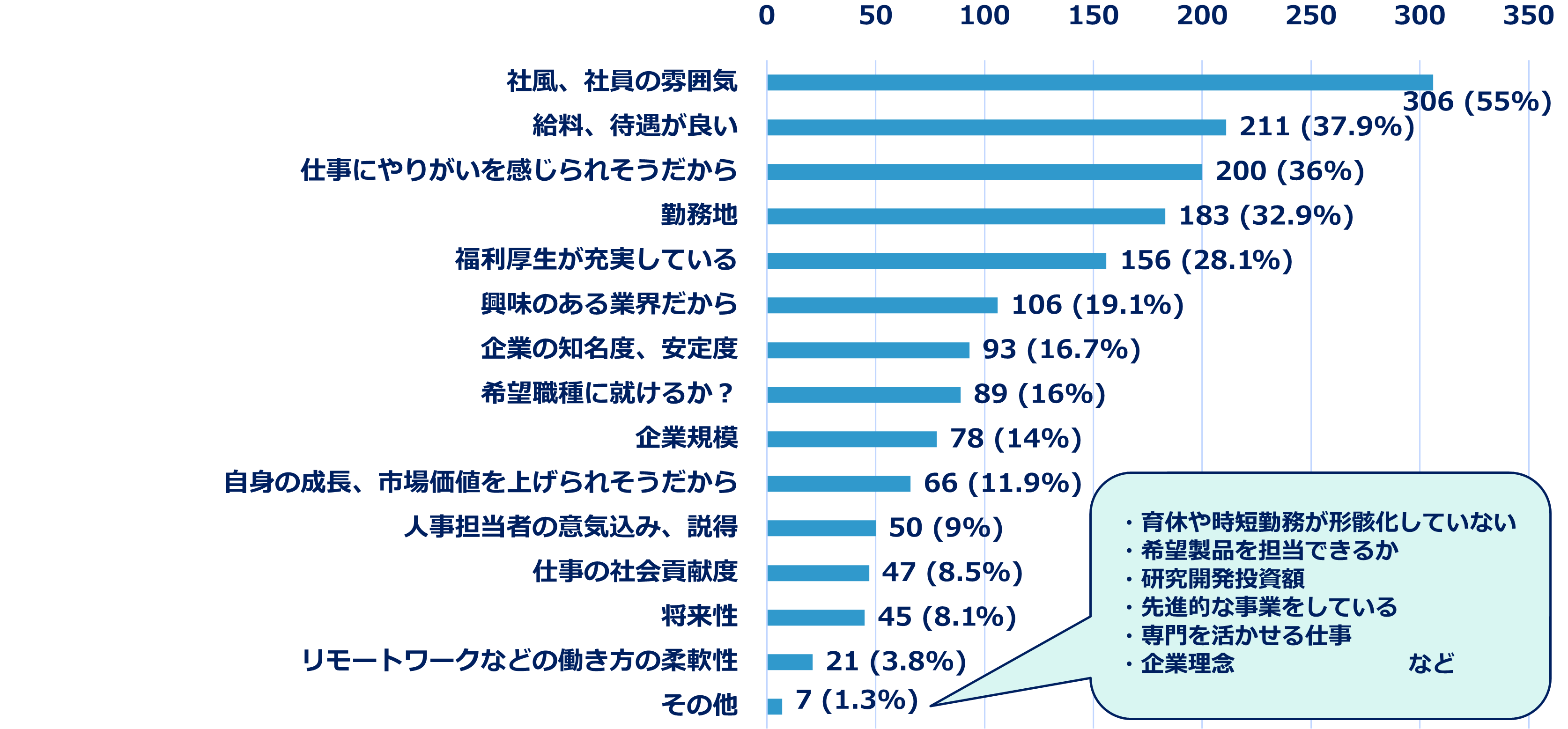 (10) 就職先の決め手は2年連続「社風、社員の雰囲気」が1位