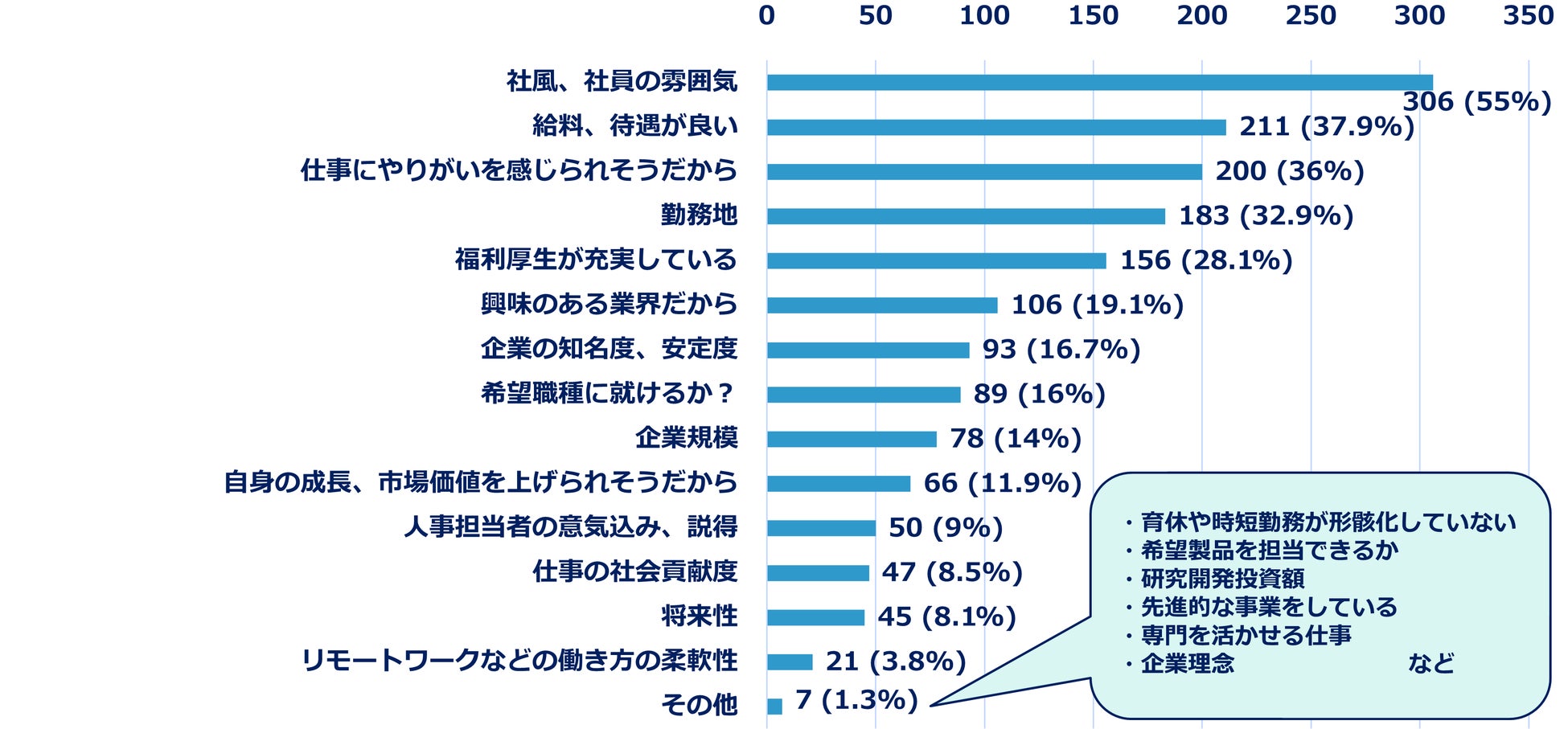 Q. 就職先に就職しようと決めた決め手をお教えください※最大3つまで(n=556)