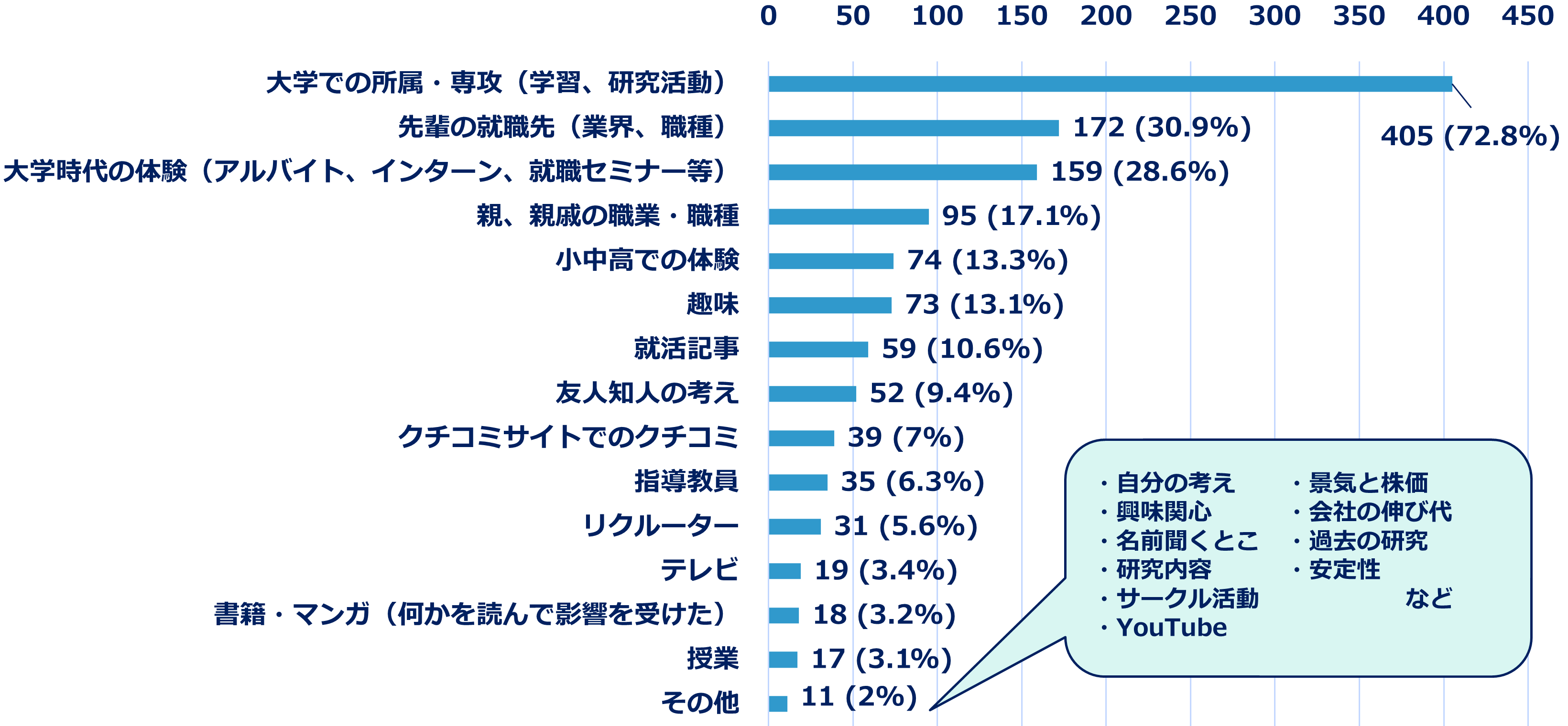 Q. 自分の仕事選び(業界、職種)に影響している要素を選択ください ※最大3つまで(n=556)
