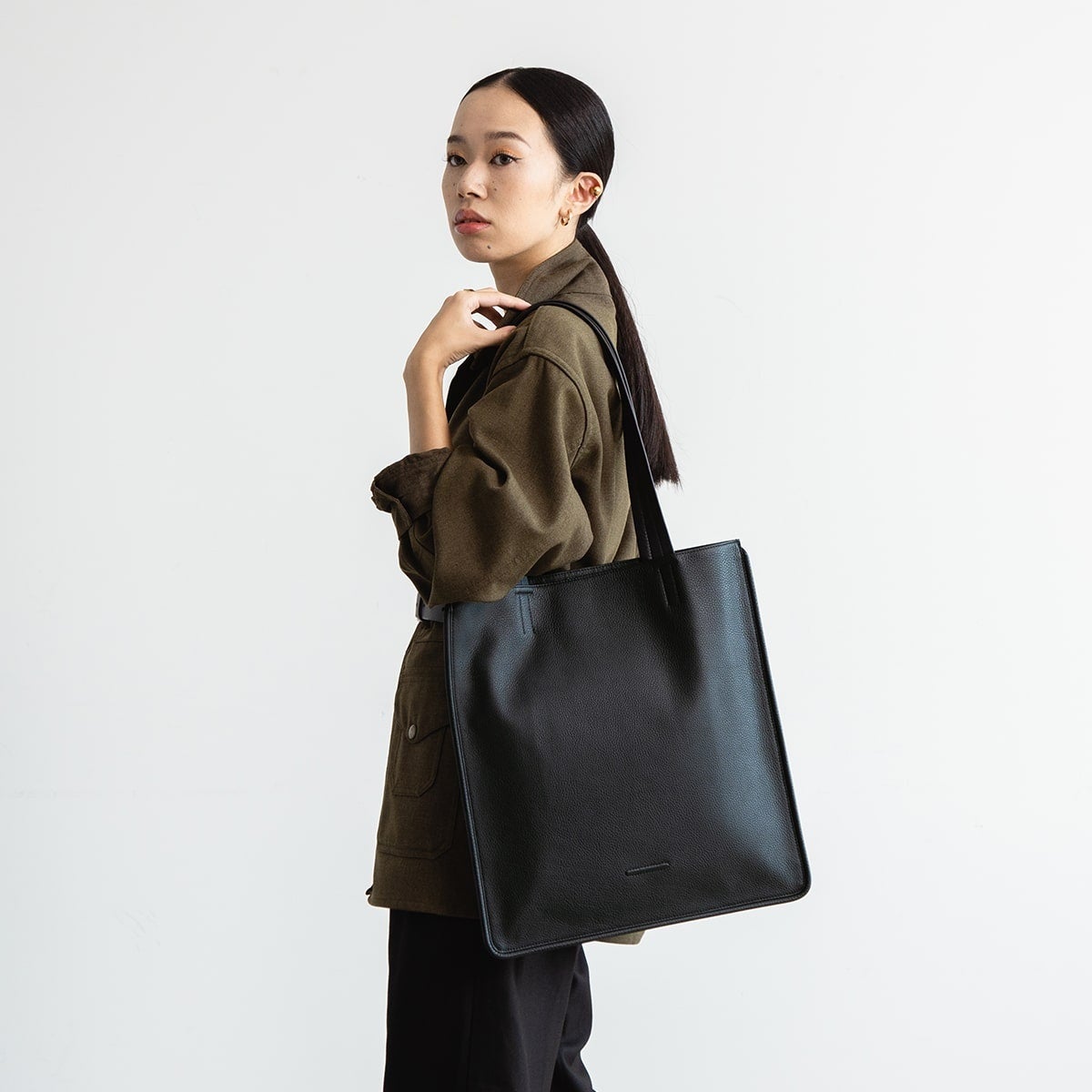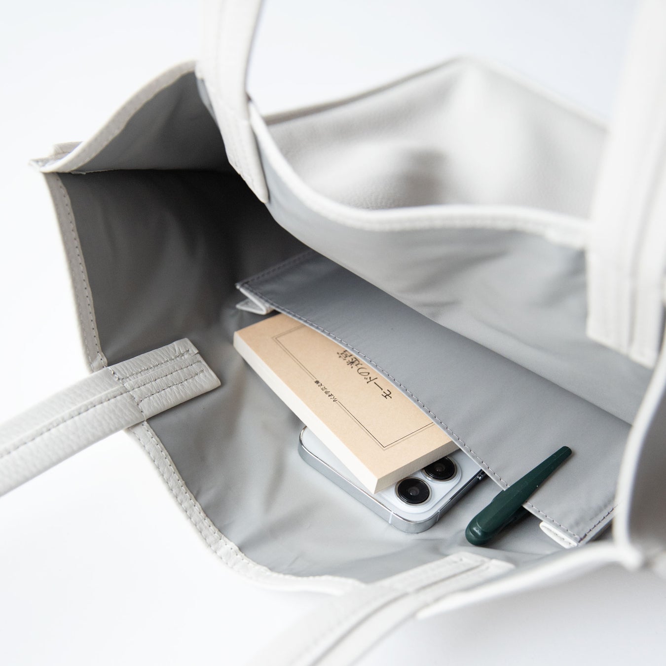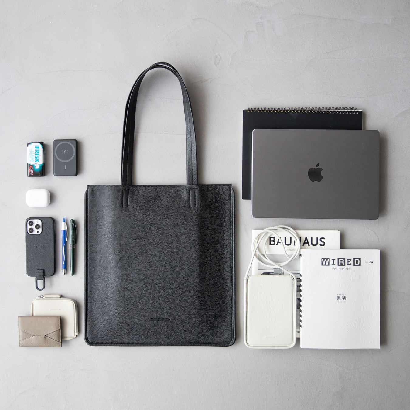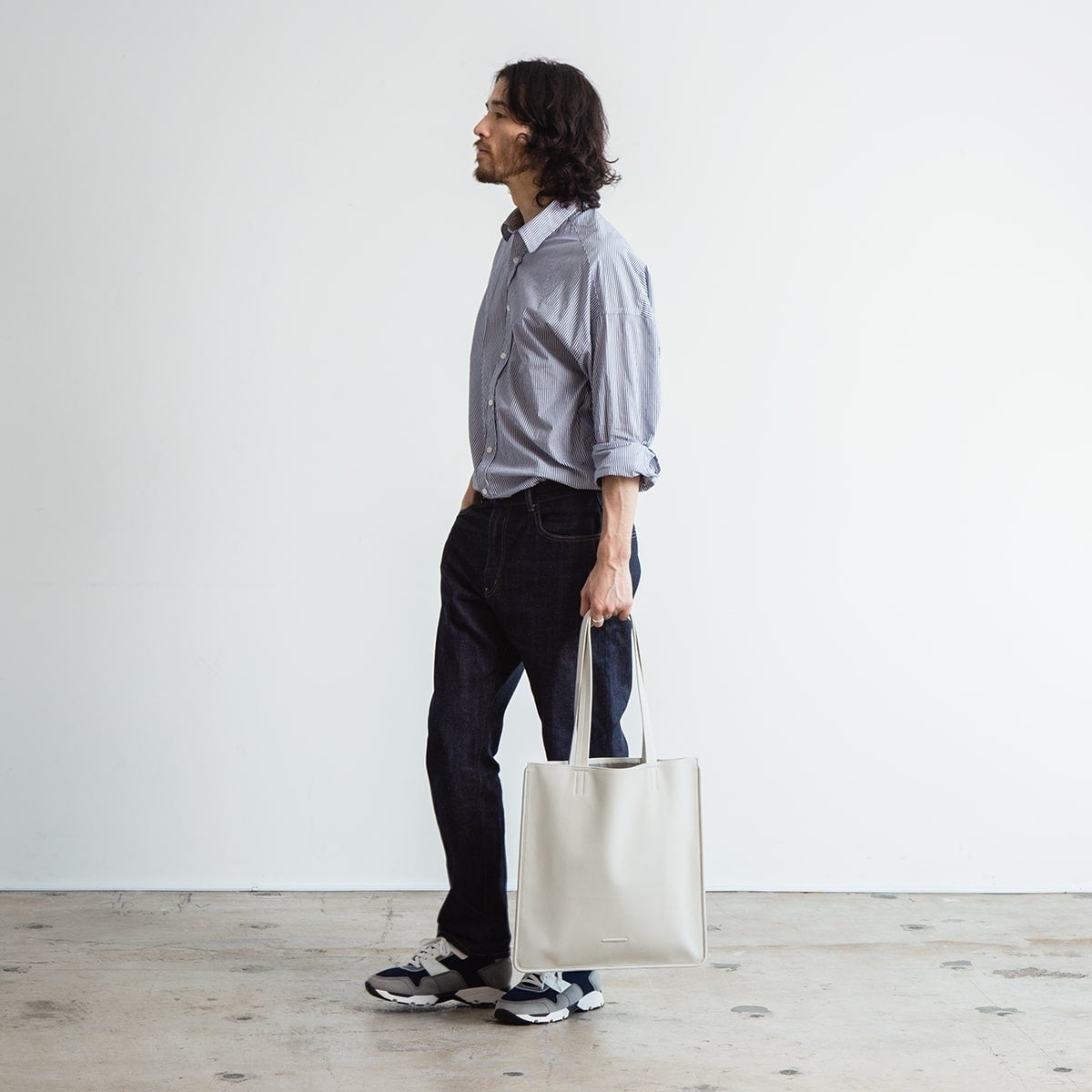 気兼ねなく日常使いできる約530gという軽やかさと、オンオフ問わず日々のコーディネートを格上げするミニマルなデザインを兼ね備えたトートバッグに仕立てました。