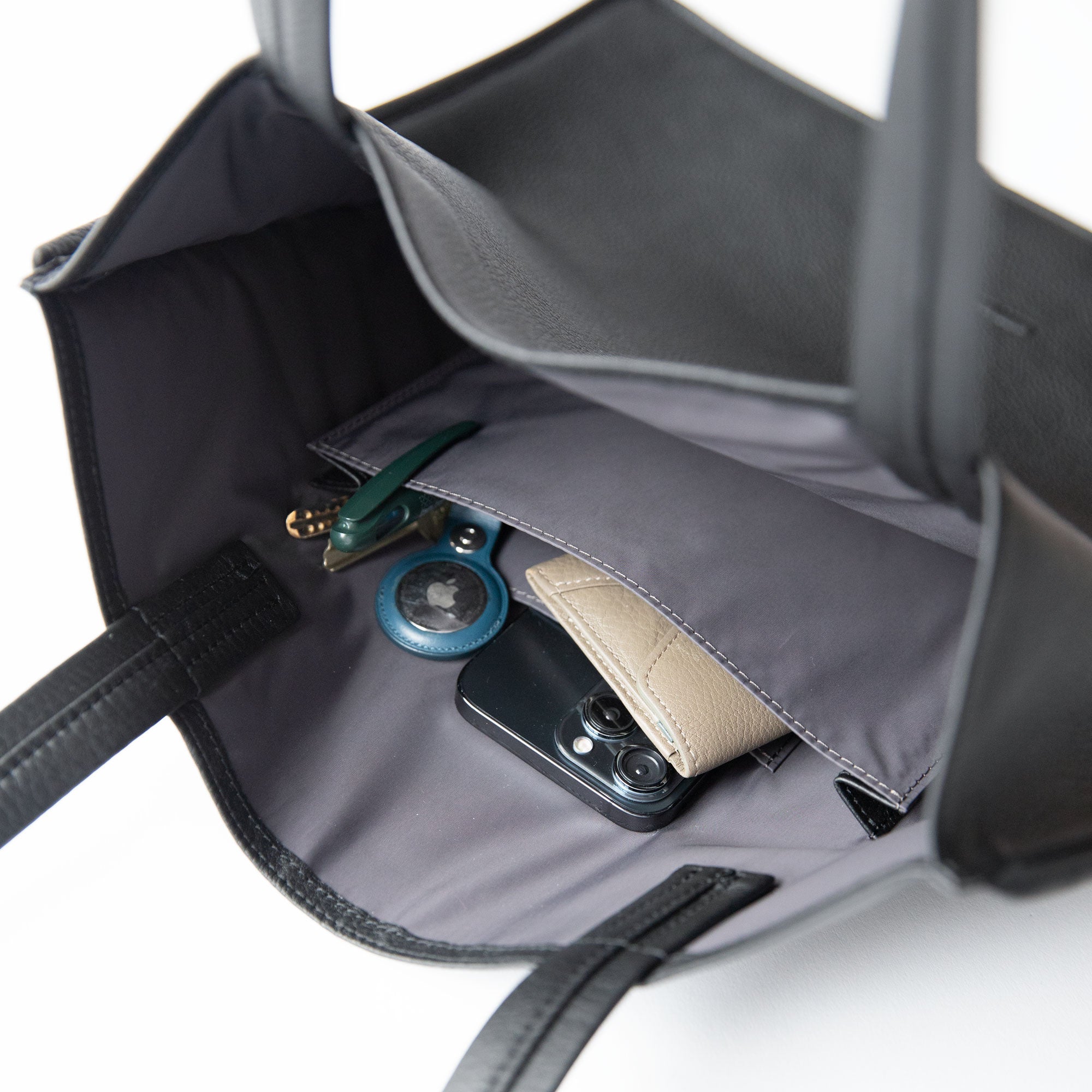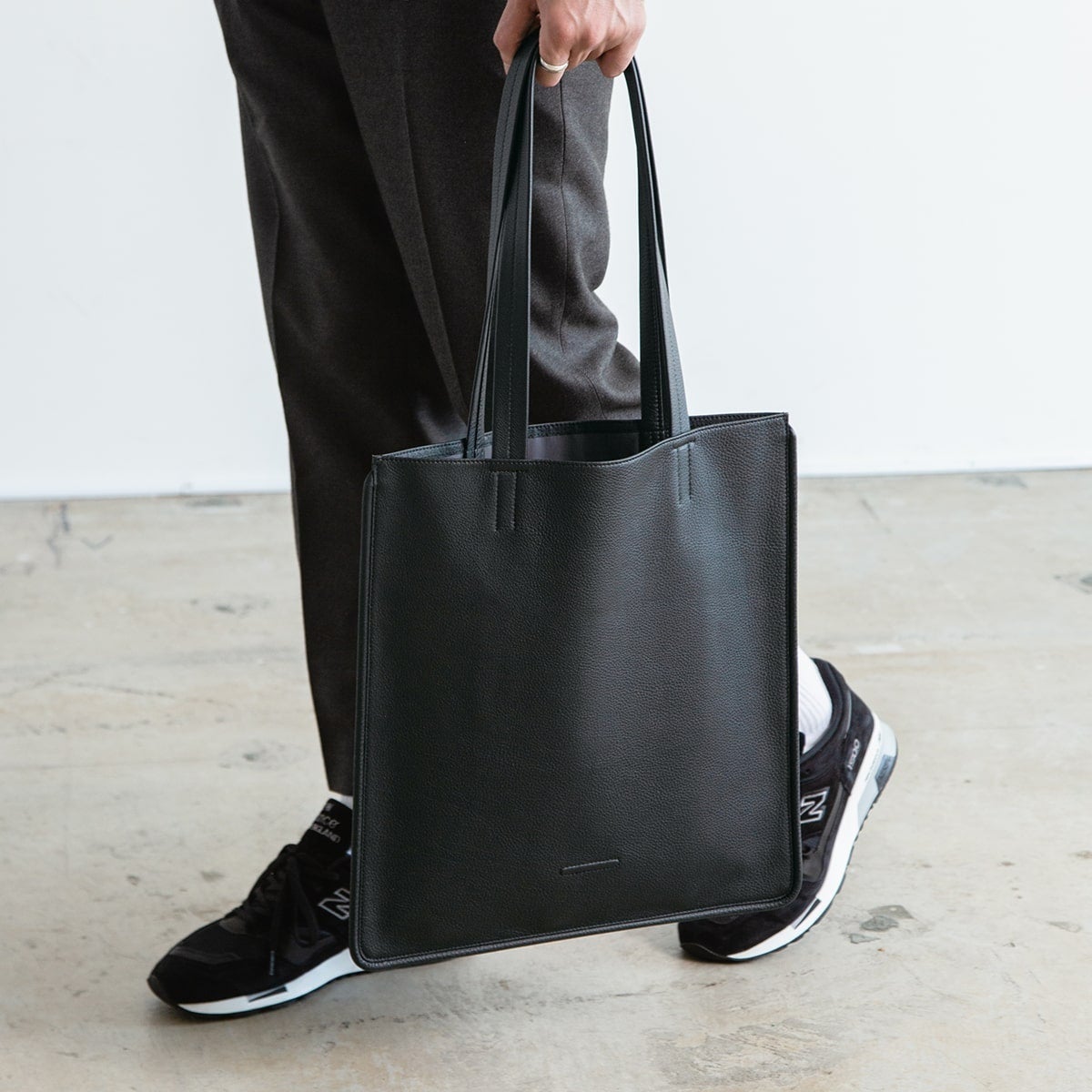 幅広いファッションに馴染むミニマルなデザイン。アクセスの良いマチ付ポケットや耐久性の優れたハンドル、防水レザーの採用など、メインバッグとしてより活躍するトートバッグにアップデート。