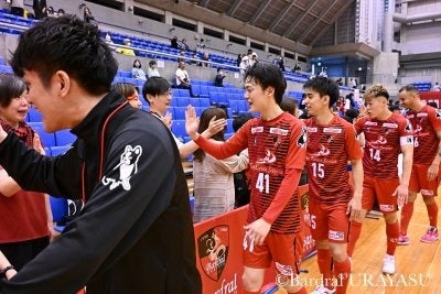 ▼試合後、アリーナ席への選手お見送りハイタッチ