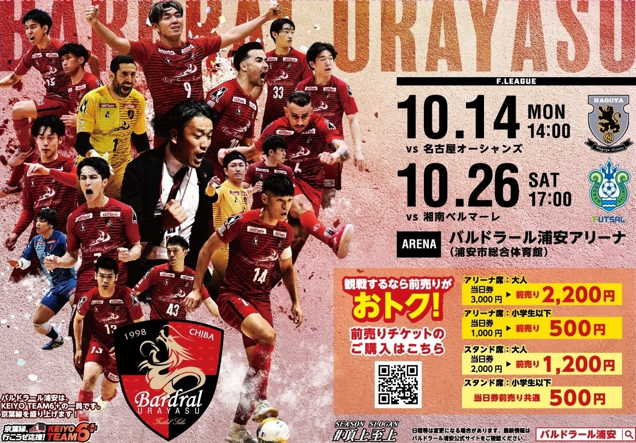 10月14日(月祝)Fリーグ「バルドラール浦安」ホームゲーム開催情報(vs名古屋)のお知らせ