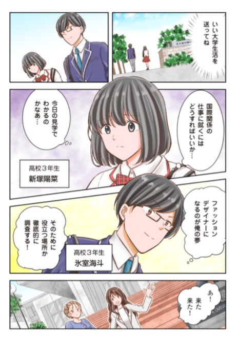夢を追いかけるために、どう大学を選べばいいのか。この大学で間違いないのか。実際目にしてみないと、描きたい未来が描けない。まだ何色にも染まらない未来を彩れるのは自分自身しかいない。自分が描く将来へ一歩を踏み出す2人の大学見学を描いた物語です。