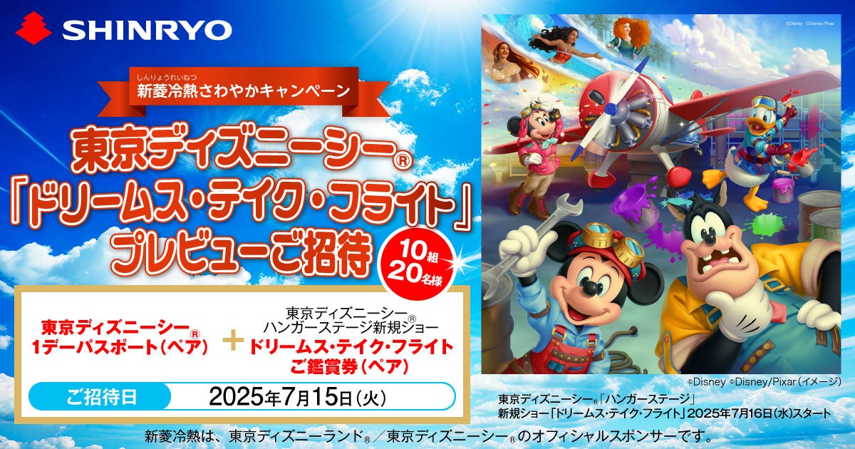 新菱冷熱工業株式会社は、2025年7月15日に開催される東京ディズニーシーⓇ「ドリームス・テイク・フライト」プレビューに、クイズに答えて正解者の中から抽選で10組20名様をご招待するキャンペーンを、2025年4月21日~2025年5月16日まで開催します。