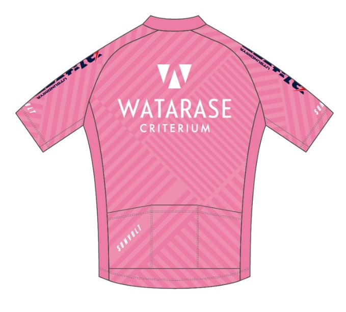 会場となるわたらせサイクルパークが渡良瀬遊水地内に位置している事から、渡良瀬遊水地のイメージであるハートとピンク色をモチーフとしたチャンピオンジャージです。