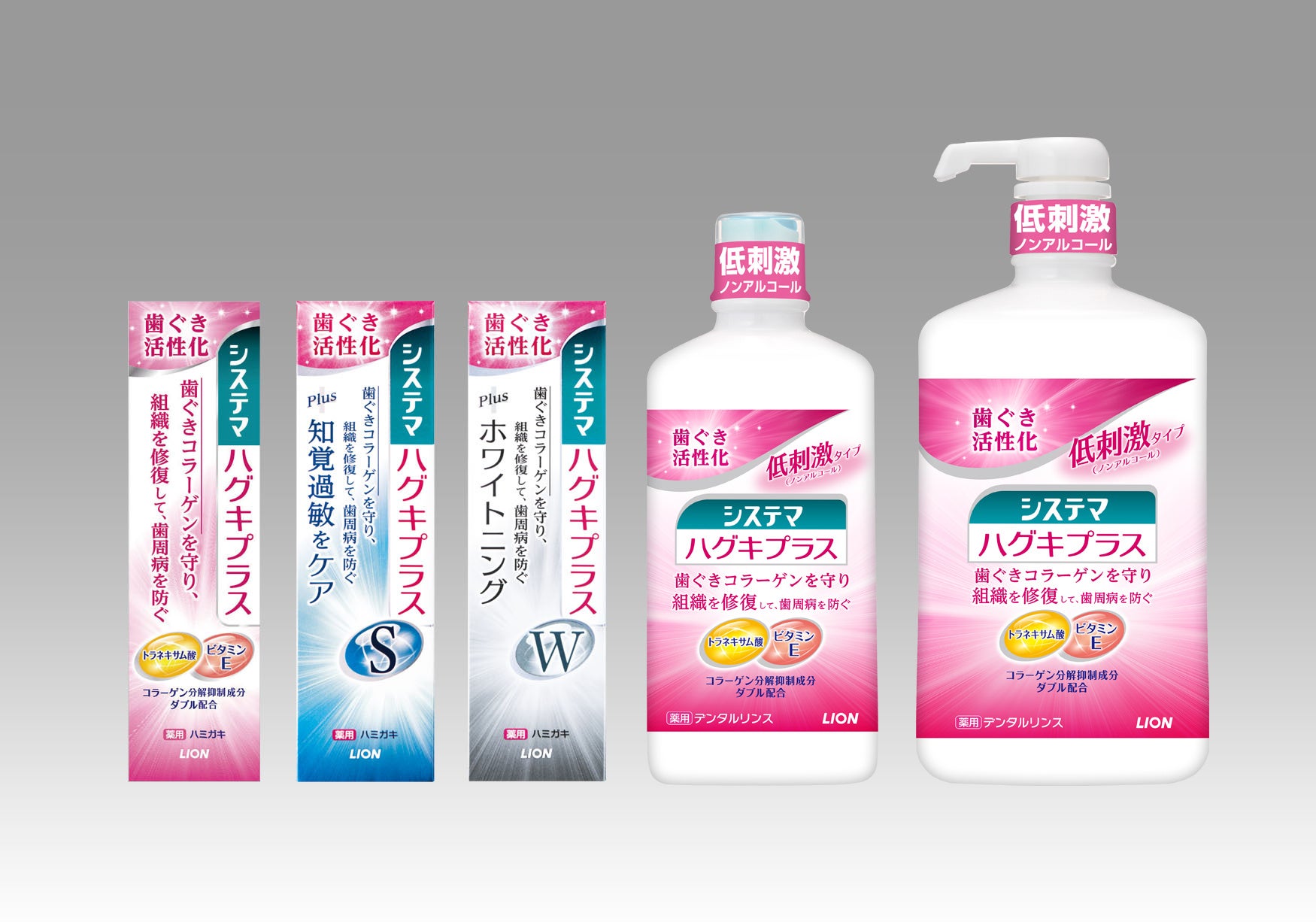 『システマ ハグキプラス』シリーズは、発売以来、「歯ぐきを活性化し、歯周病(※1)を防ぐ」ハミガキ・デンタルリンス・ハブラシとして、歯ぐきのおとろえが気になり始めたお客様を中心にご高評いただいております。また、2020年からは、肌と同様の構成成分であり、歯ぐきの約60%を占めるコラーゲン(※2)に着目し、「歯ぐきのコラーゲン」を守るケアを取り入れることで歯周病(※1)予防を提案してきました。その結果、『システマ ハグキプラス』シリーズ計で年間約139億円(※3)の売上を達成しております。