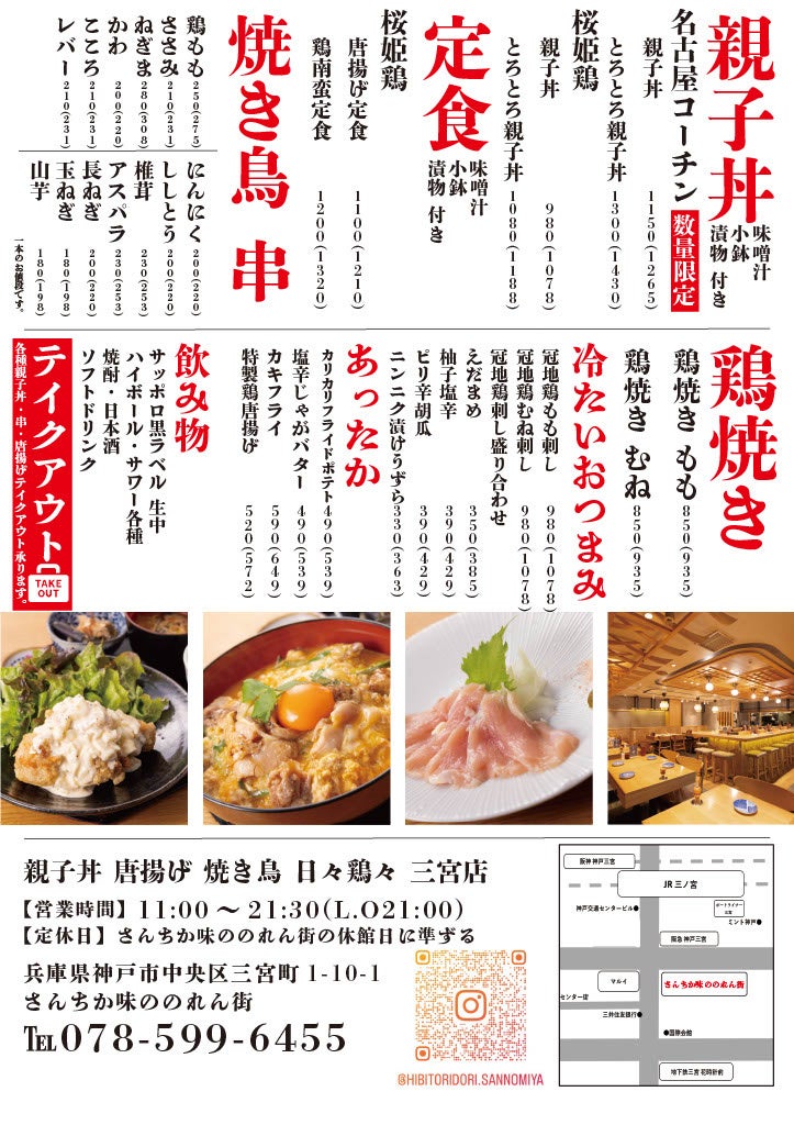 ・店舗名 : 親子丼・唐揚げ・焼き鳥 日々鶏々(ひびとりどり)