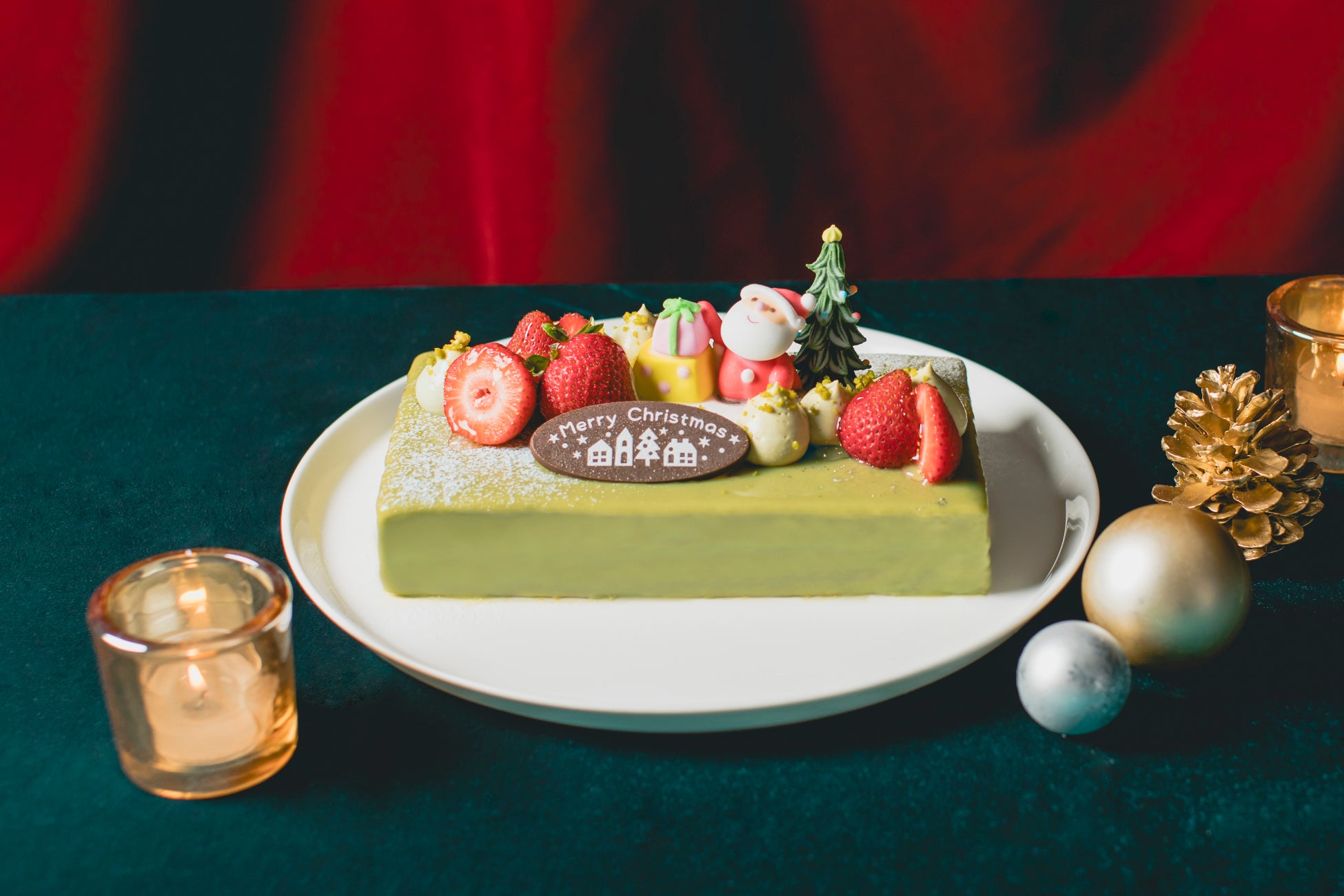 クリスマスケーキの王道とも呼べるショートケーキ、クリスマスカラーの赤・グリーンを基調にしたラズベリーとピスタチオのケーキが聖夜を祝うフェスティブ感と華やかさをお届けいたします。